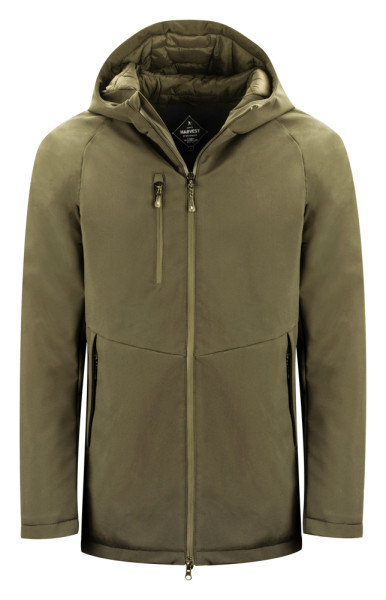 Middellange winterjas. Buitenstof gebonden met fleece aan de binnenkant. Two-way waterdichte ritssluiting vooraan en aan de borstzak.