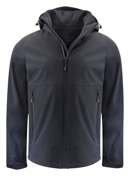 Wind- en waterafstotende softshell jas. Omgedraaide, waterdichte ritssluiting vooraan en aan de zijzakken. Binnenzak aan de linkerzijde met ritssluiting. Afneembare capuchon. Aanpasbare velcro sluiting aan de manchetten. De capuchon en de zoom zijn aanpasbaar met elastische trekkoorden. Verborgen ritssluiting aan de binnenzijde voor print- en of borduring.
