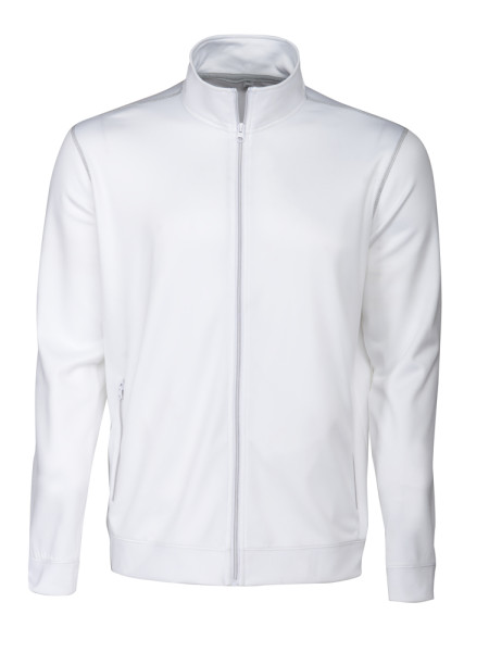 Polyester sweatshirt met lange ritssluiting. Contrasterende flatlock naden aan de mouwopening en stiksels van ritssluiting in grijze contrasterende kleur. Binnenzijde is geborsteld voor een zacht en warm gevoel.