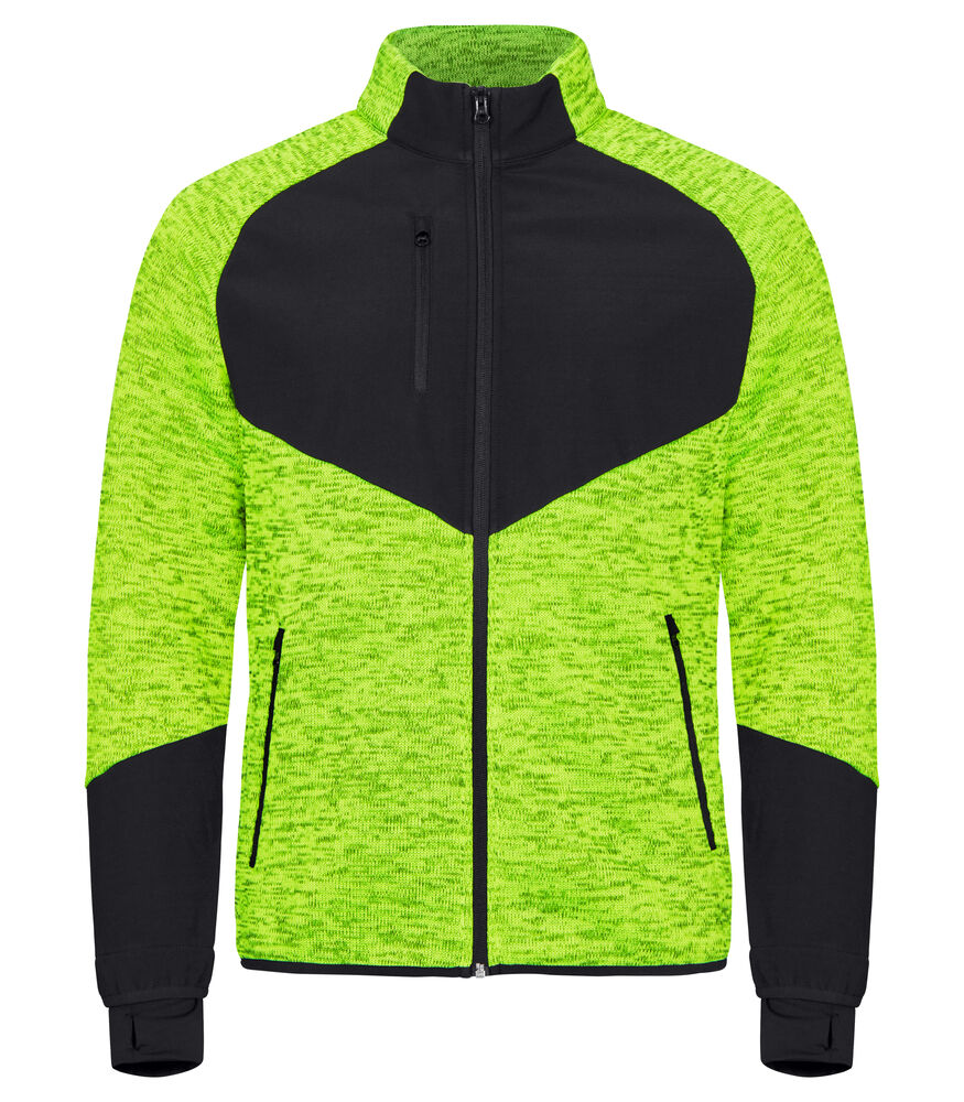 Een warm, gemakkelijk te dragen gebreid fleecejack met delen van softshell, drie zakken aan de buitenzijde met een ritssluiting en twee grote binnenzakken. De mouwen zijn afgewerkt met elastische manchetten met duimgaten en een opvouwbare reflecterende band. Voorzien van een eenvoudig te verwijderen label voor rebranding.