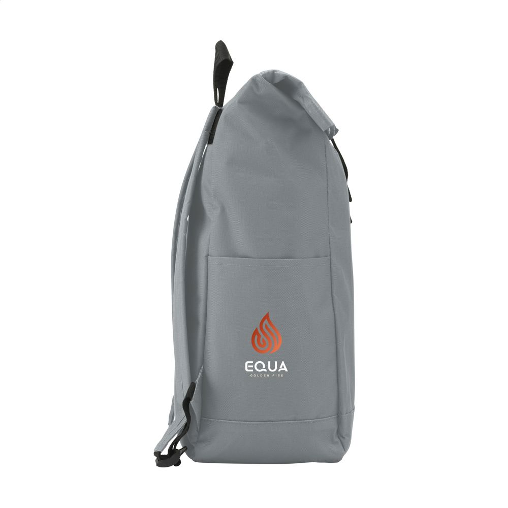 Stoere, praktische urban ‘roll-top’ rugzak van sterk 600D polyester met waterbestendige PVC binnenzijde, gedeeltelijk nylon gevoerd. De rugzak heeft één groot binnenvak, een insteekvak aan beide zijdes en een groot ritsvak aan de voorzijde. Met foam rugzijde voor meer draagcomfort, gewatteerde, en verstelbare schouderriemen. Met draaglus en een rolsluiting met kliksysteem aan de bovenzijde. De perfecte tas voor dagelijks gebruik. Inhoud ca. 18 liter.