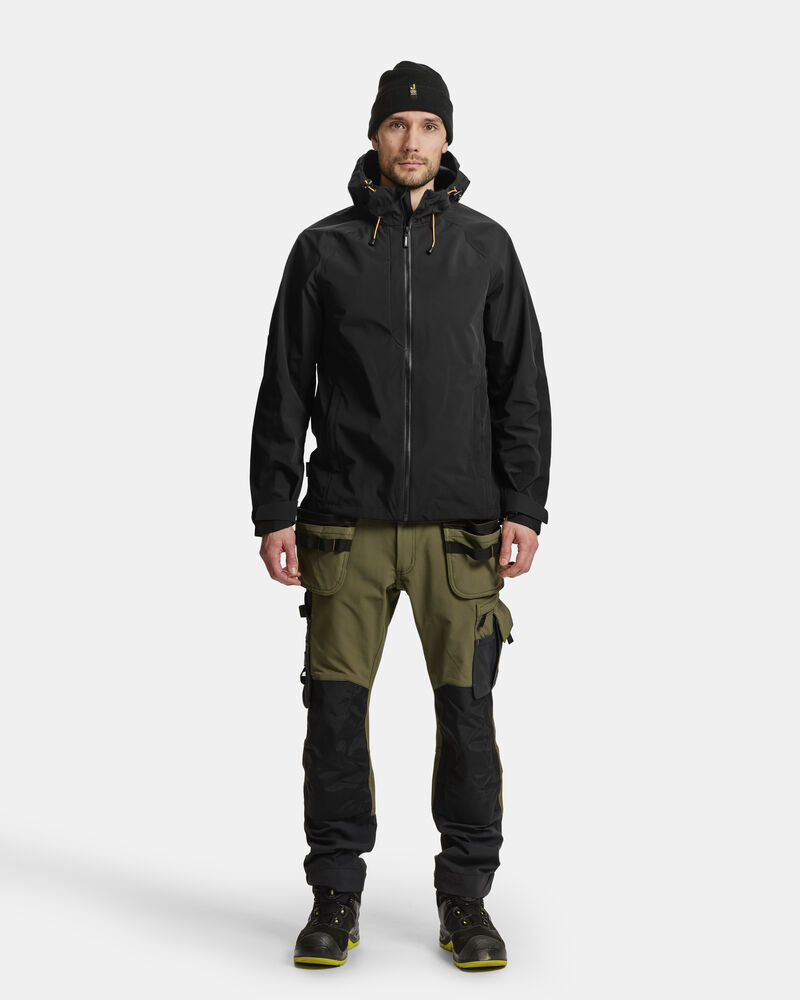 Waterproof shell jas in 4-way stretch kwaliteit met getapete naden. Versteviging in contrastkleur op de mouwen. Verstelbare capuchon met elastisch trekkoord. Voorzien van voorzakken met rits en borstzak aan de rechterkant. Delrin rits aan de voorkant met waterafstotende ritstape. Jas is verstelbaar met elastisch koord in de zoom. Afgewerkt met voorgevormde mouwen en verstelbare manchetten met klittenband.