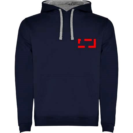 Tweekleurige hoodie met dubbele stof. Versterkte bedekte naden in de kraag en kangoeroezak. 1x1...meer