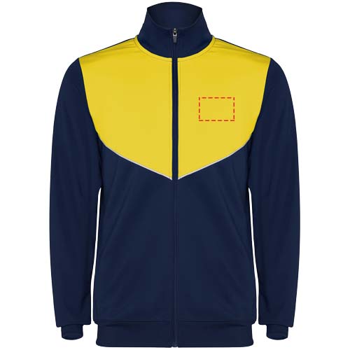Trainingspak van lichtgewicht en elastische stof. Jack met contrasterende kleur en naaiversieringen op de borst. Hoge kraag met contrasterende naden. Centrale rits aan de voorkant. Zijzakken. 2x2 geribde manchetten en taille. Broek met elastische tailleband en trekkoord. Contrasterend zijstuk met naaiboorden. Zoom met rits.