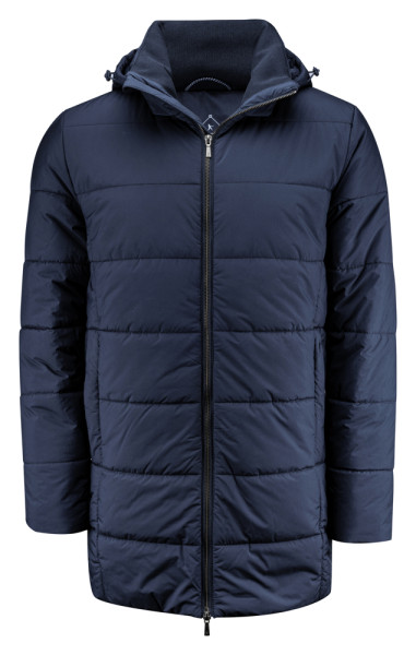 Langere, gewatteerde jas met two-way ritssluiting. Afneembare capuchon. De capuchon is aanpasbaar door middel van elastische koorden. Rib aan de kraag de manchetten. Zijzakken met ritssluiting, binnenzak met ritssluiting. Tricot geborstelde stof aan de binnenzijde van de zakken voor warme handen op koude dagen.