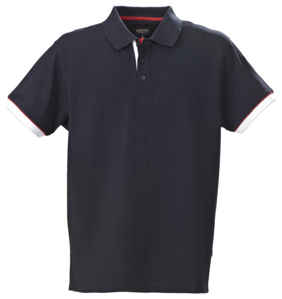Polo piqué met garengeverfde kraag. Contrasterende kleur aan de binnenzijde van de knopenband, aan de zijsplitjes en de manchetten. Neklint en halvemaanvormige nek.