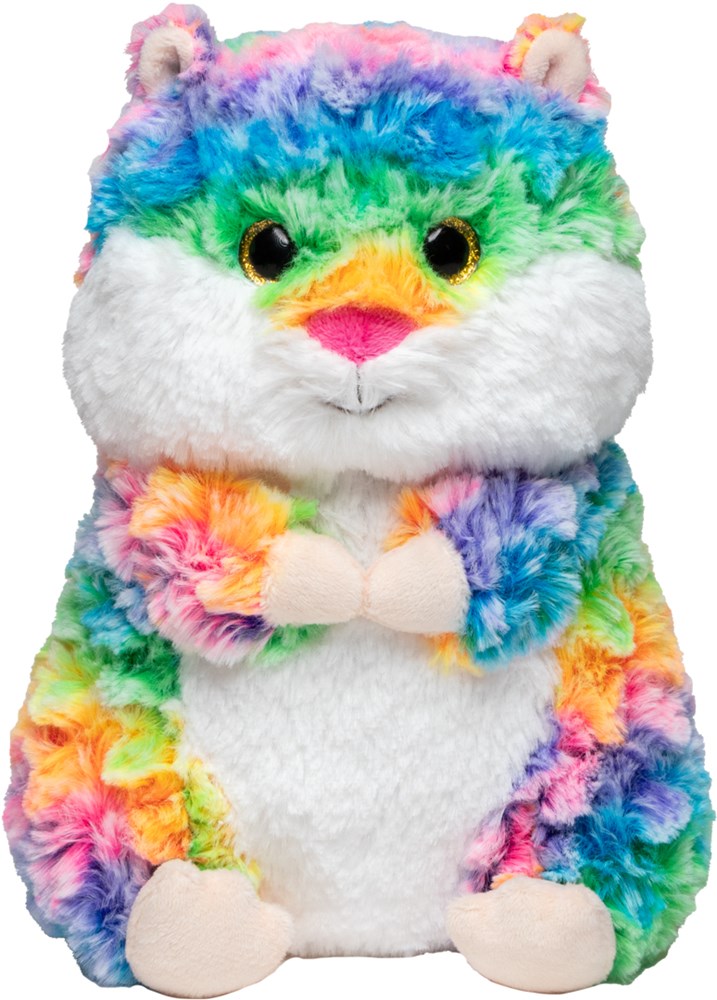 Hamster Holly verovert alle harten met zijn unieke charme! Zijn donzige, regenboogkleurige vacht maakt hem tot een echte blikvanger en geeft stralende accenten aan elke kinder- of woonkamer. Holly geeft niet alleen kleur aan het spel, maar ook een extra dosis vreugde en gezelligheid. Met zijn onweerstaanbare uiterlijk wordt hij al snel de beste knuffelgenoot en favoriete maatje. Voor ontwerp en reclame op maat zijn er verschillende mogelijkheden: of het nu gaat om het bedrukken van een promotievlag of om bedrukbare mode en accessoires zoals T-shirts, driehoekige sjaals en omslagdoeken. Creativiteit zit in de vacht van Hamster Holly geschreven.