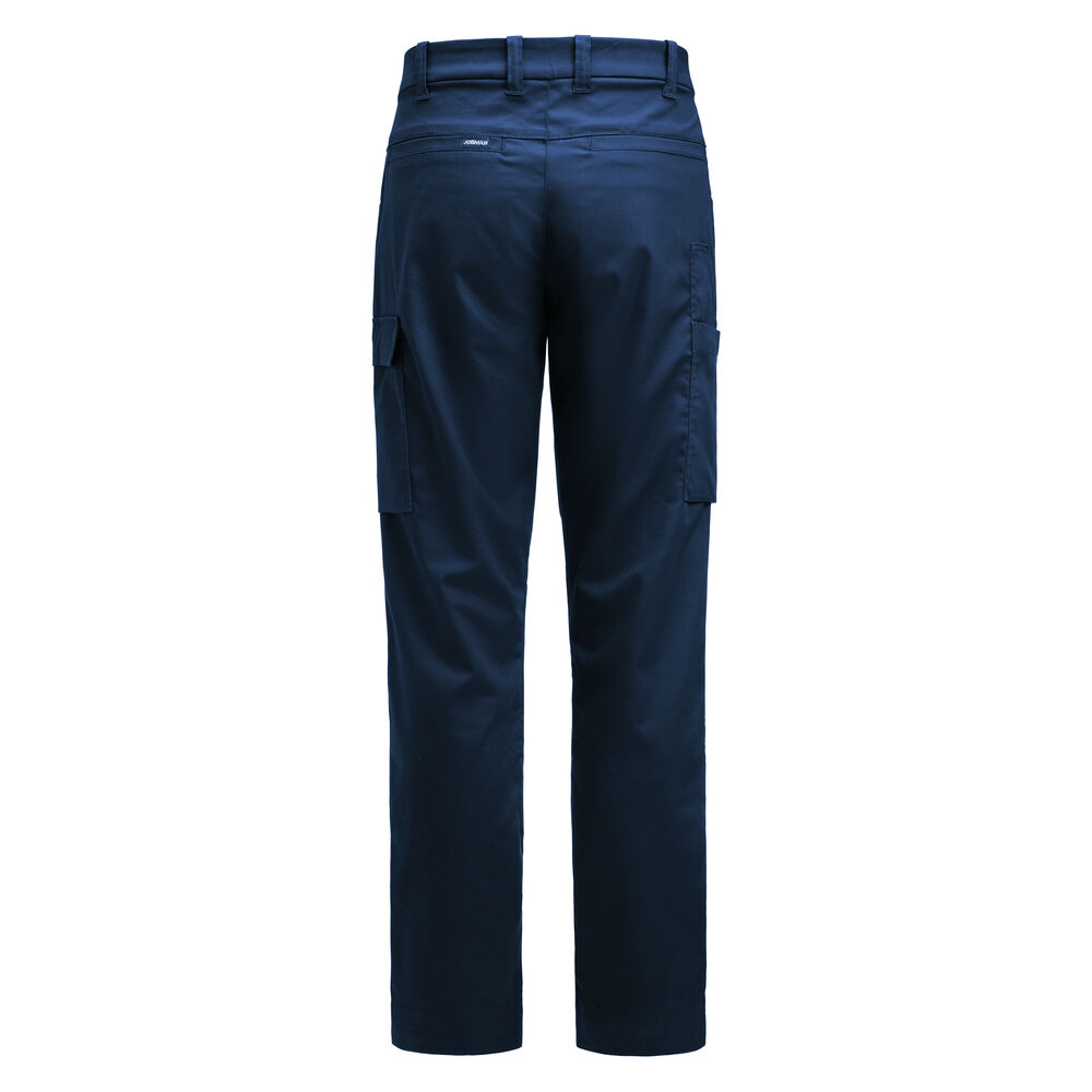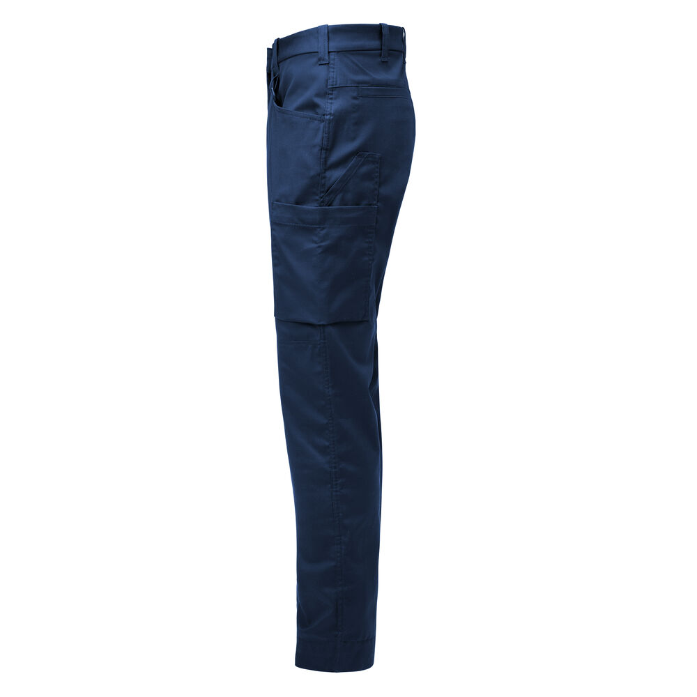Servicebroek met stretch. Verborgen knoop aan de voorkant voor "Non-scratch" ontwerp. Beenzak aan de rechterkant met ruimte voor een meetlint en beenzak aan de linkerkant met klepzak voor pennen. D-ring aan de voorste riemlus voor een ID-kaarthouder.