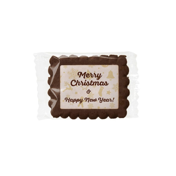Bedrukt kaart koekje met caramel smaak, ca. 10 gram per stuk in transparante folie. Voorzien van een full colour bedrukking op het koekje
