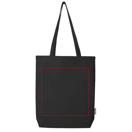 Gemaakt van 100% GRS gecertificeerd gerecycled katoen van 270 g/m². De Florida draagtas met brede bodem zorgt voor een meer verantwoorde en duurzame keuze. Met zijn brede bodem biedt deze extra ruimte voor elke gelegenheid, van winkeltripjes tot uitstapjes. Lengte handvat: 30 cm. Inhoud: 10 liter.