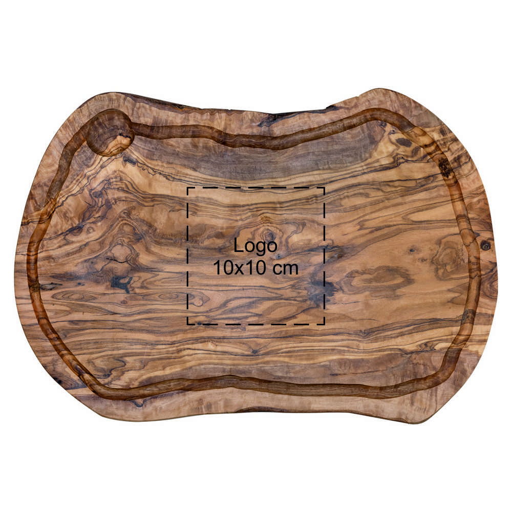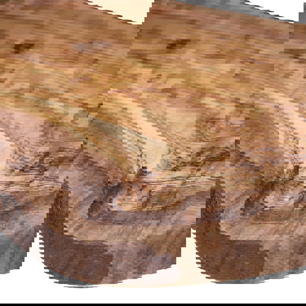 Een ovale olijfhouten plank met sapgeul is een prachtig en functioneel element voor iedere keuken en eettafel. Deze plank is gemaakt van olijfhout, afkomstig van bomen die geen vruchten meer afgeven. Hierdoor wordt het hout op een duurzame manier hergebruikt en krijgt het een tweede leven als mooie serveerplank.