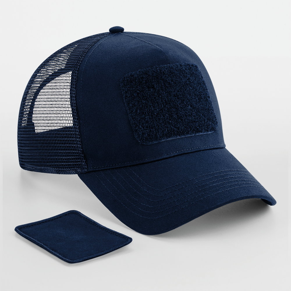 100% katoen voor voorpaneel en zonneklep. Achterpanelen in mesh van 100% polyester. Verwisselbare Rip-Strip™ patch voor decoratie. 5 panelen. Voorgevormde zonneklep. Regelbaar met plastic retrotong. Snapback. Afneembaar TearAway-etiket, makkelijk opnieuw te labelen.
