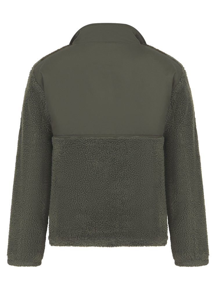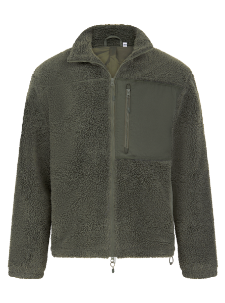 100% gerecycleerd polyester. Contrasterende trechterhals met fleecevoering. Borstzak met ritssluiting. Vilten zijzakken met drukknoopsluiting. Elastische mouwboorden. Regular snit. Elastisch koordje onderaan het jasje.