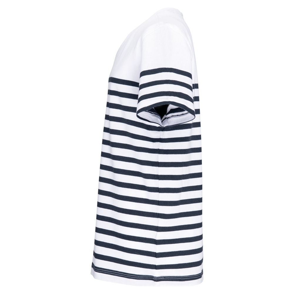 100% katoen. Dit T-shirt werd gemaakt van 100% biologisch gekamd katoen. Rechte snit. Enzymgewassen. Ronde halsopening met 1x1 ribboord. Gebreide strepen. Nektape. Dubbel stiksel aan mouwuiteinden en onderkant. Geen merklabel, voor eenvoudige personalisatie.
