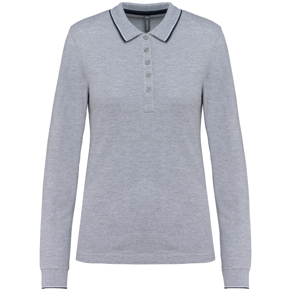 K281 - Dames polo van piquétricot met lange mouwen