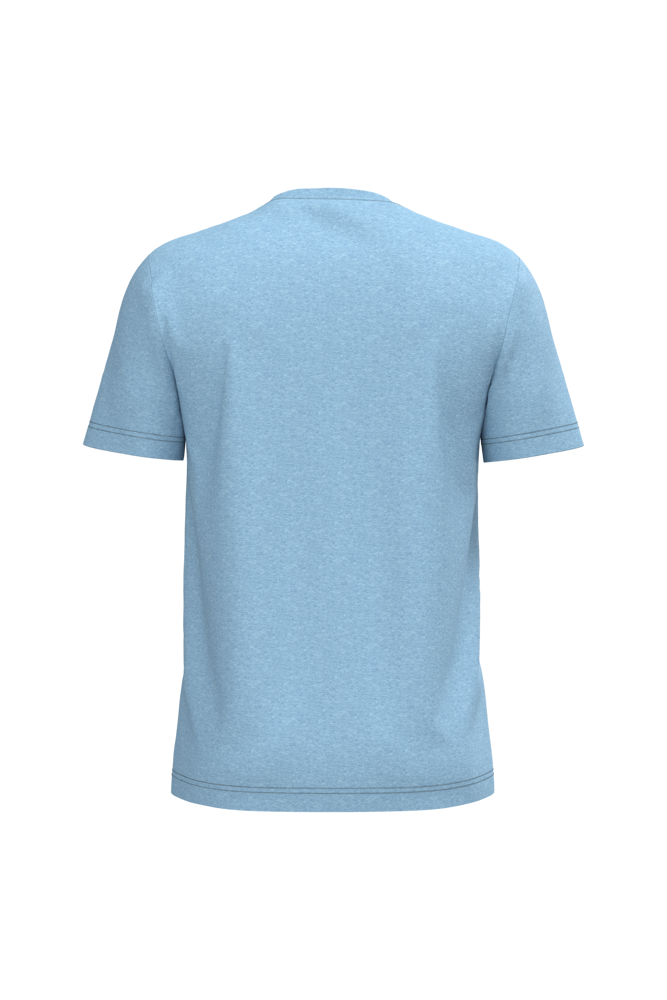 Effen kleuren : 100% katoen. Kleur Ash Heather : 98% katoen / 2% viscose. Kleur Oxford Grey : 90% katoen / 10% viscose. Kleuren Wine Heather ; French Navy Heather ; Green Marble Heather ; Cloudy Blue Heather : 80% katoen / 20% polyester. En kleur Grey Heather : 70% katoen / 30% polyester. Alle kleuren zijn gemaakt van biologisch katoen in omschakeling. Gekamd katoen. Ronde hals in ribboord met elasthan. Toon-op-toon nektape. Buisvormig. Dubbel stiksel aan mouwuiteinden en onderkant.