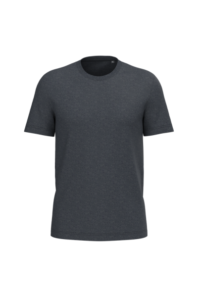 Effen kleuren : 100% katoen. Kleur Ash Heather : 98% katoen / 2% viscose. Kleur Oxford Grey : 90% katoen / 10% viscose. Kleuren Wine Heather ; French Navy Heather ; Green Marble Heather ; Cloudy Blue Heather : 80% katoen / 20% polyester. En kleur Grey Heather : 70% katoen / 30% polyester. Alle kleuren zijn gemaakt van biologisch katoen in omschakeling. Gekamd katoen. Ronde hals in ribboord met elasthan. Toon-op-toon nektape. Buisvormig. Dubbel stiksel aan mouwuiteinden en onderkant.