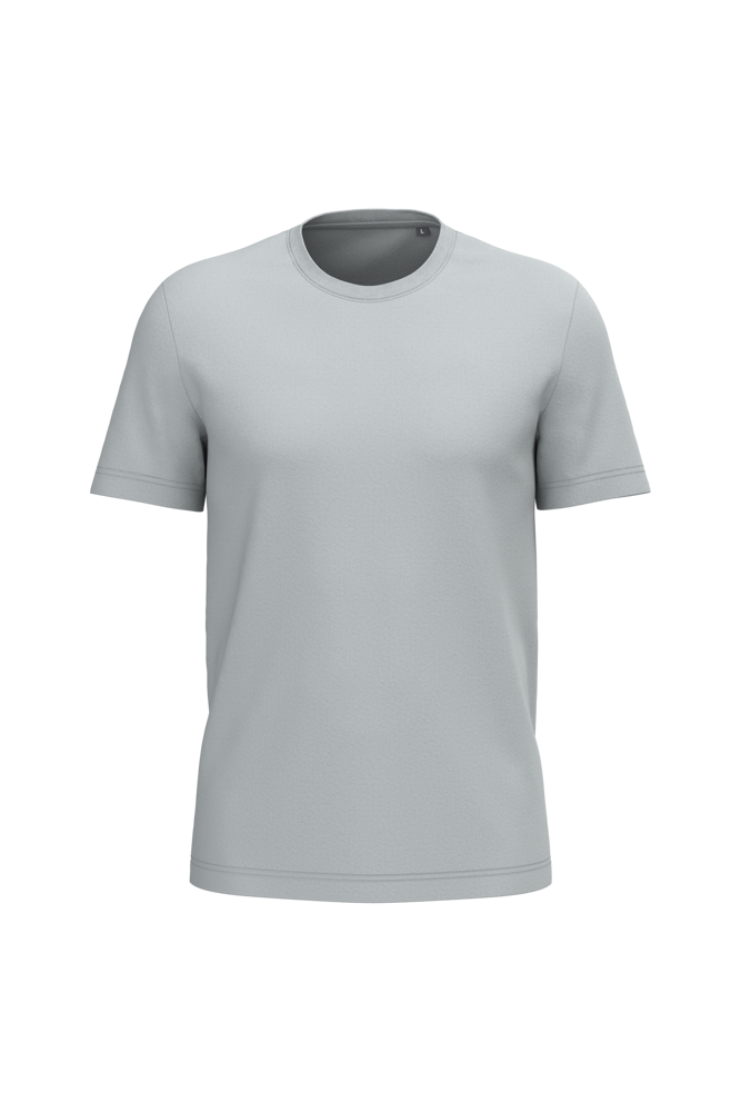 Effen kleuren : 100% katoen. Kleur Ash Heather : 98% katoen / 2% viscose. Kleur Oxford Grey : 90% katoen / 10% viscose. Kleuren Wine Heather ; French Navy Heather ; Green Marble Heather ; Cloudy Blue Heather : 80% katoen / 20% polyester. En kleur Grey Heather : 70% katoen / 30% polyester. Alle kleuren zijn gemaakt van biologisch katoen in omschakeling. Gekamd katoen. Ronde hals in ribboord met elasthan. Toon-op-toon nektape. Buisvormig. Dubbel stiksel aan mouwuiteinden en onderkant.