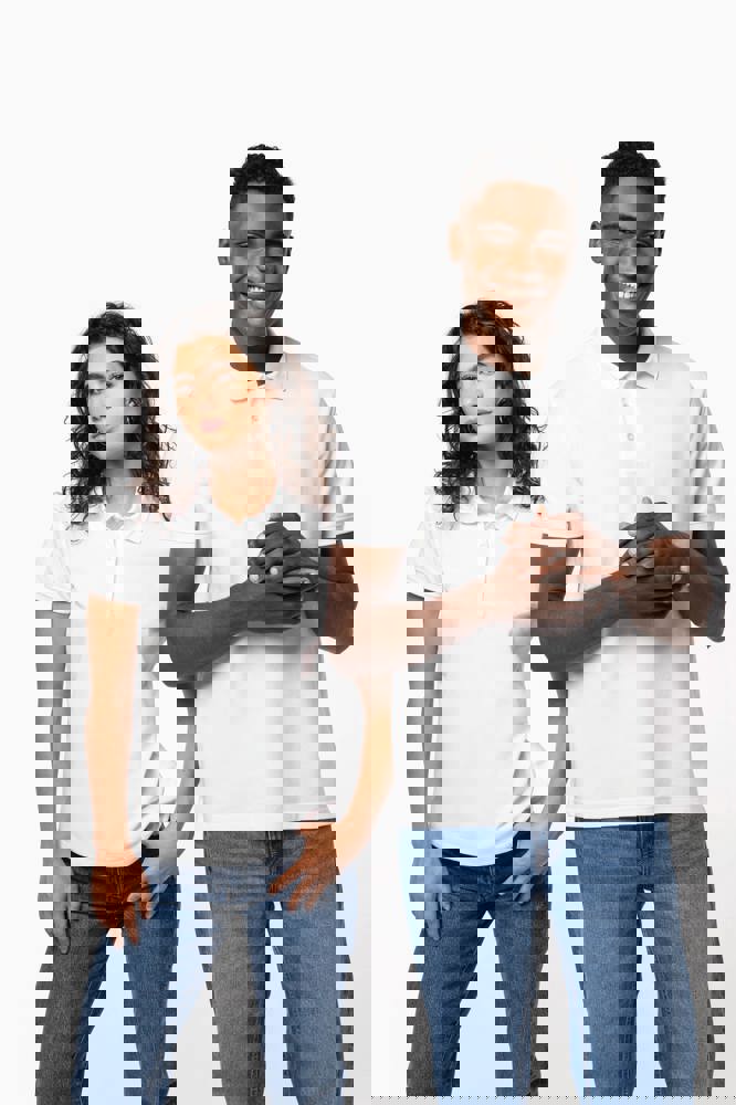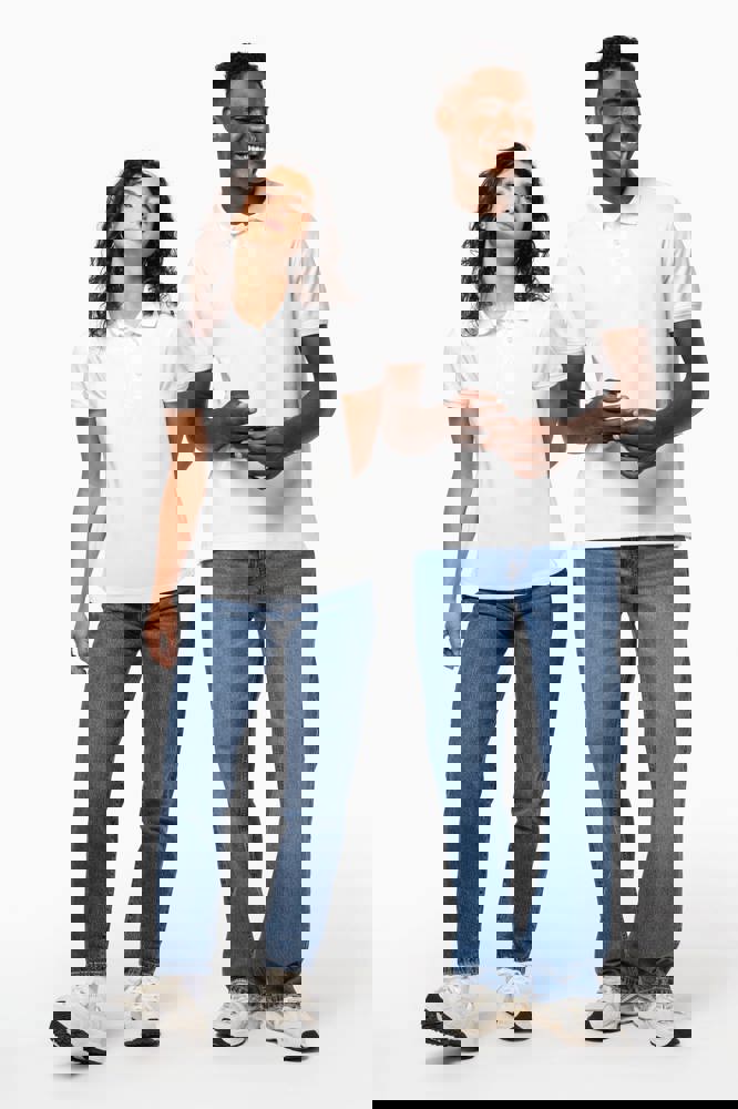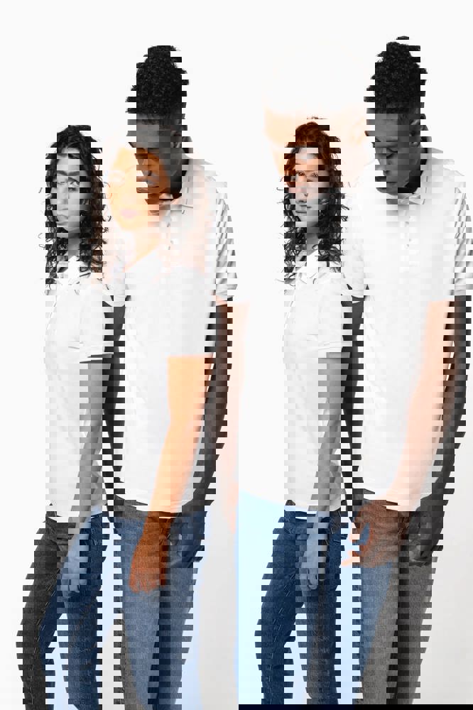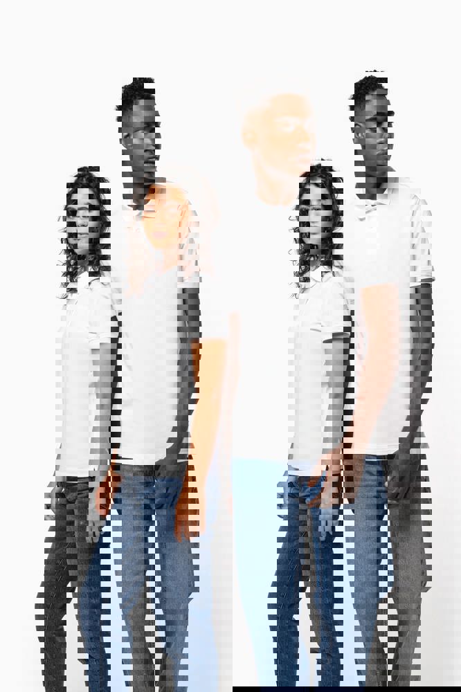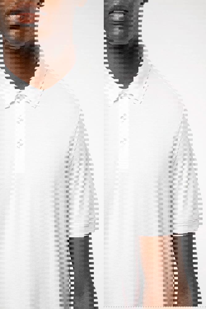 100% katoen. Gekamd katoen. Piquétricot. Rechte snit. Zijnaden. Gemaakt in Portugal. 1x1 ribboord aan hals en mouwuiteinden. Knooplijst met 3 contrasterende parelmoeren knopen op alle kleuren. Bijpassende nektape in de hoofdstof in de kraag. Verstevigde schouders. Zijsplitten. Boord onderaan afgewerkt met dubbel stiksel. Geen merklabel, enkel een afscheurbaar maatlabel voor eenvoudige personalisatie.
