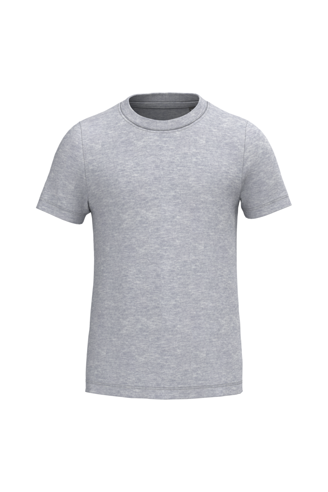 Effen kleuren : 100% katoen. Kleur Ash Heather 98% katoen / 2% viscose en Oxford Grey : 90% katoen / 10% viscose. Alle kleuren zijn gemaakt van biologisch katoen in omschakeling. Gekamd katoen. Cut-and-sew-techniek. Ronde hals in ribboord en elasthan. Toon-op-toon nektape. Dubbel stiksel aan mouwuiteinden en onderkant.