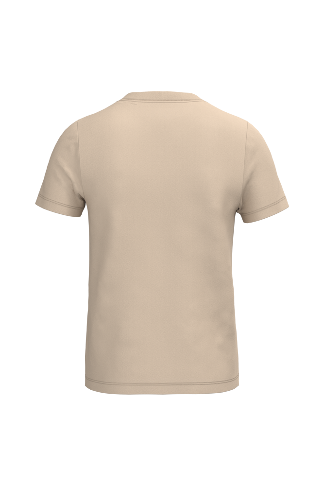 Effen kleuren : 100% katoen. Kleur Ash Heather 98% katoen / 2% viscose en Oxford Grey : 90% katoen / 10% viscose. Alle kleuren zijn gemaakt van biologisch katoen in omschakeling. Gekamd katoen. Cut-and-sew-techniek. Ronde hals in ribboord en elasthan. Toon-op-toon nektape. Dubbel stiksel aan mouwuiteinden en onderkant.