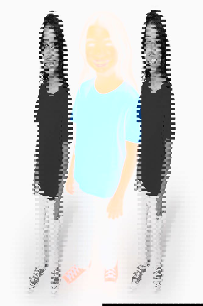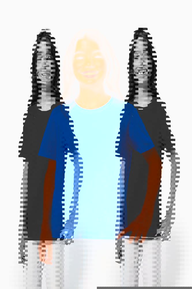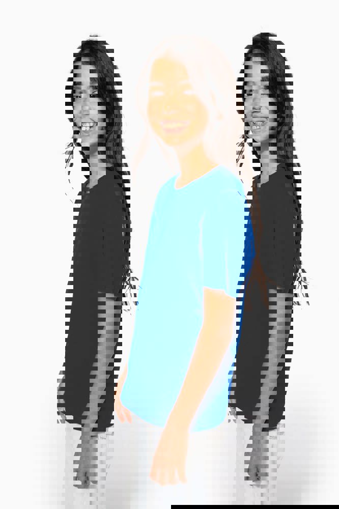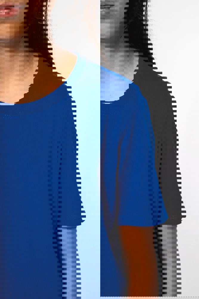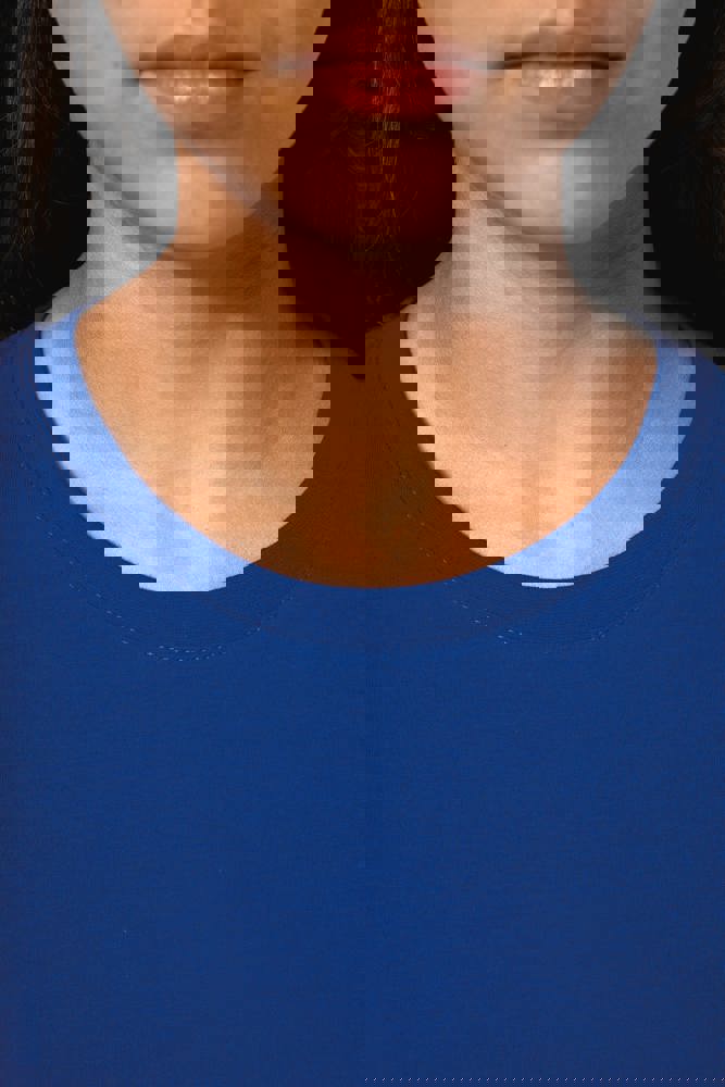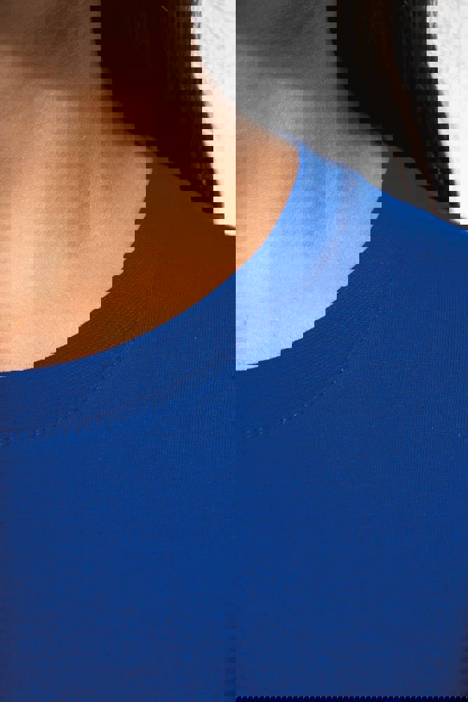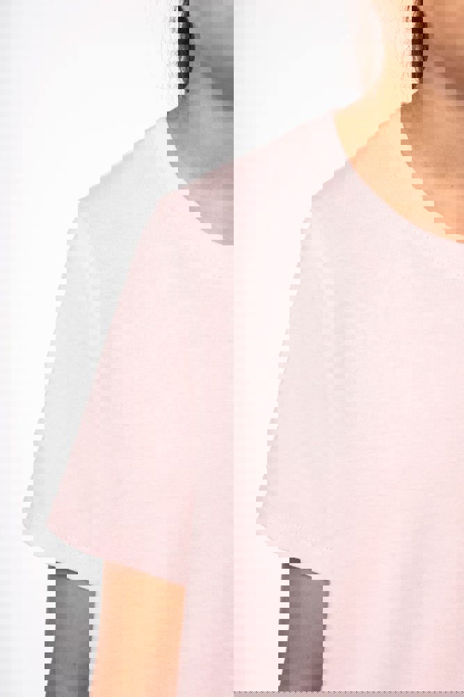 Effen kleuren : 100% katoen. Kleur Ash Heather 98% katoen / 2% viscose en Oxford Grey : 90% katoen / 10% viscose. Alle kleuren zijn gemaakt van biologisch katoen in omschakeling. Gekamd katoen. Cut-and-sew-techniek. Ronde hals in ribboord en elasthan. Toon-op-toon nektape. Dubbel stiksel aan mouwuiteinden en onderkant.