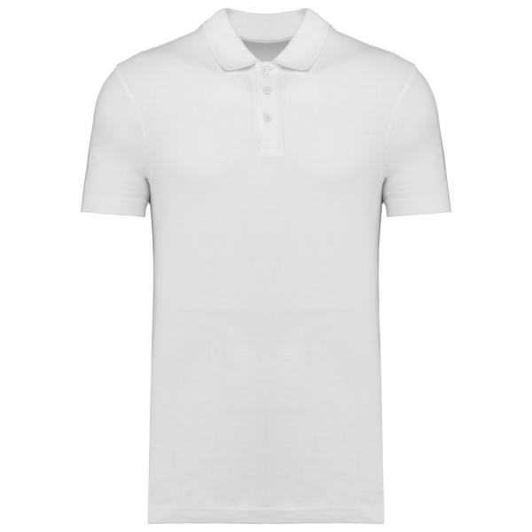 100% katoen. Oxford Grey kleurenpalet: 90% katoen / 10% viscose. Gekaard katoen. Piquétricot. Rechte snit. Zijnaden. 1x1 ribboord aan de hals. Knooplijst met 3 bijpassende knopen. Dubbel stiksel op mouwuiteinden en boord onderaan. Zijsplitten. Bijpassende nektape in de hoofdstof. Geen merklabel, enkel een afscheurbaar maatlabel voor eenvoudige personalisatie.