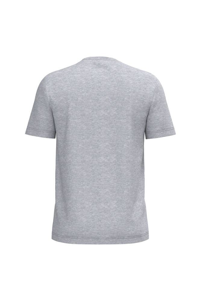 Effen kleuren : 100% katoen. Kleur Oxford Grey : 90% katoen / 10% viscose. Kleur Wine Heather, Green Marble Heather & Cloudy Blue Heather : 80% katoen / 20% polyester. lle kleuren zijn gemaakt van biologisch katoen in omschakeling. Gekamd katoen. Buisvormige snit. Rechte snit. Ronde hals in ribboord met dubbel stiksel aan weerszijden van de naad. Toon op toon nektape. Dubbel stiksel aan de mouwuiteinden en de onderkant. Geen merklabel in de kraag, maar enkel een maatlabel voor eenvoudige personalisatie.