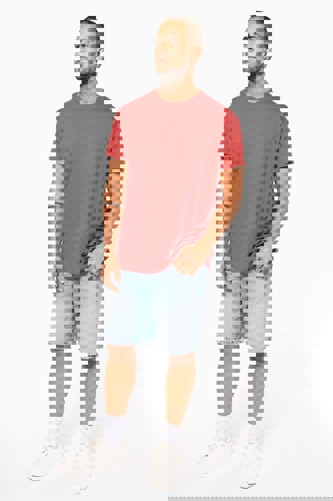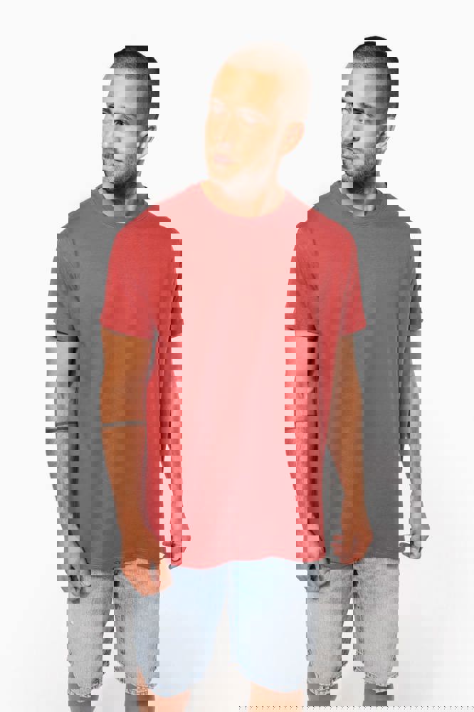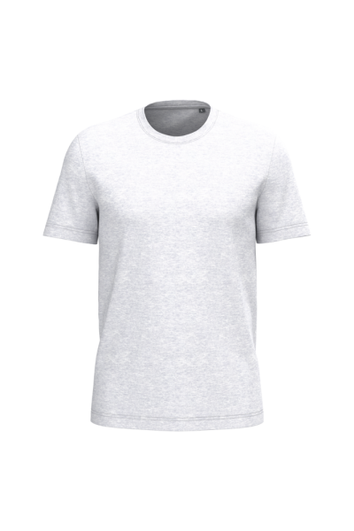 Effen kleuren : 100% katoen. Kleur Oxford Grey : 90% katoen / 10% viscose. Kleur Wine Heather, Green Marble Heather & Cloudy Blue Heather : 80% katoen / 20% polyester. lle kleuren zijn gemaakt van biologisch katoen in omschakeling. Gekamd katoen. Buisvormige snit. Rechte snit. Ronde hals in ribboord met dubbel stiksel aan weerszijden van de naad. Toon op toon nektape. Dubbel stiksel aan de mouwuiteinden en de onderkant. Geen merklabel in de kraag, maar enkel een maatlabel voor eenvoudige personalisatie.