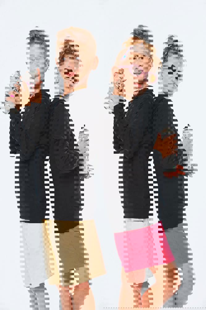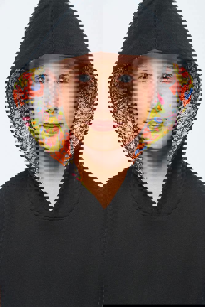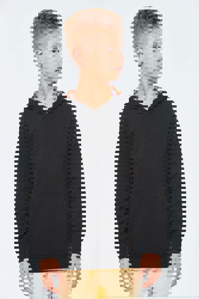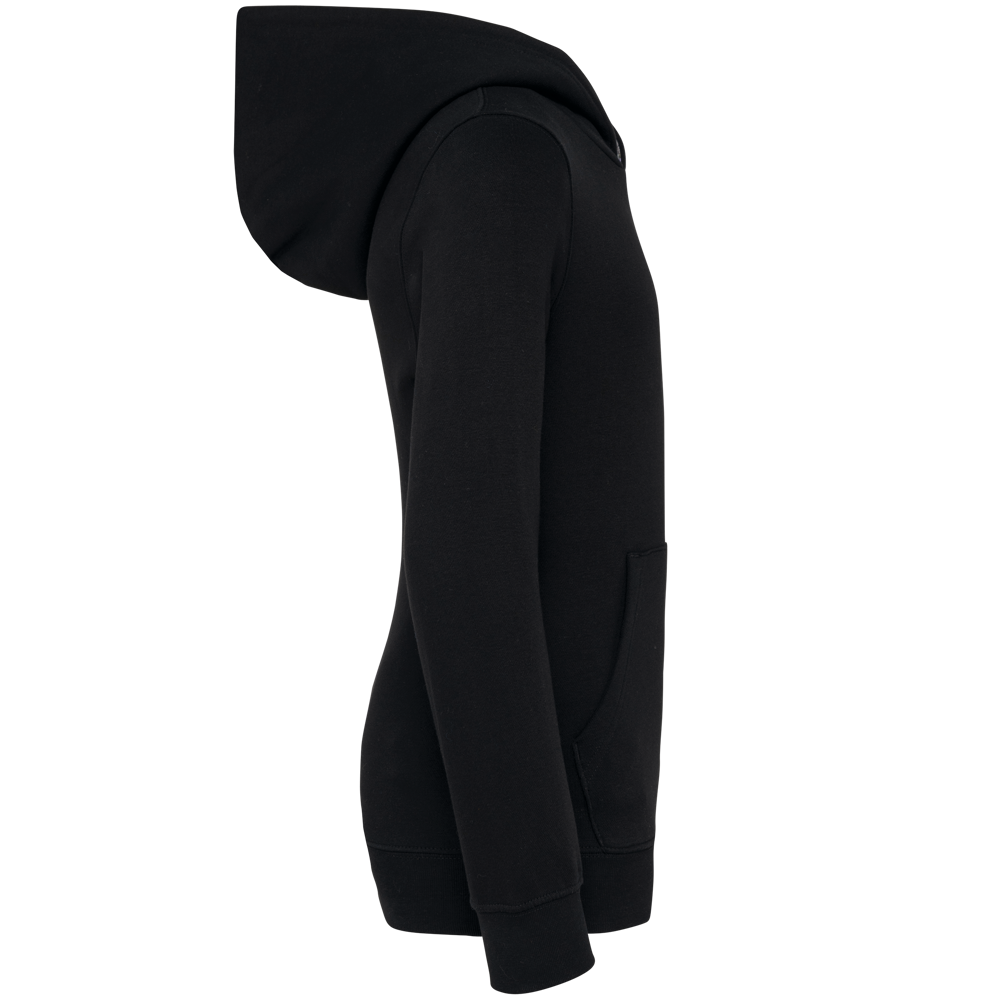 80% katoen / 20% polyester. Gekamd katoen. Aan de binnenkant geborsteld fleece 3 draden. Rechte snit. Rechte mouwen. Kangoeroezakken. Halvemaanvormige halsopening voor eenvoudige personalisatie van het merk aan de binnenkant van de kraag. Afwerkingen van 1x1 ribboord aan de mouwuiteinden en de boord. Gevoerde capuchon met een themastof in bedrukt jerseykatoen. Tear-away merklabel.