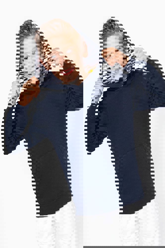 K4014 - Unisex kindersweater met contrasterende capuchon met motief