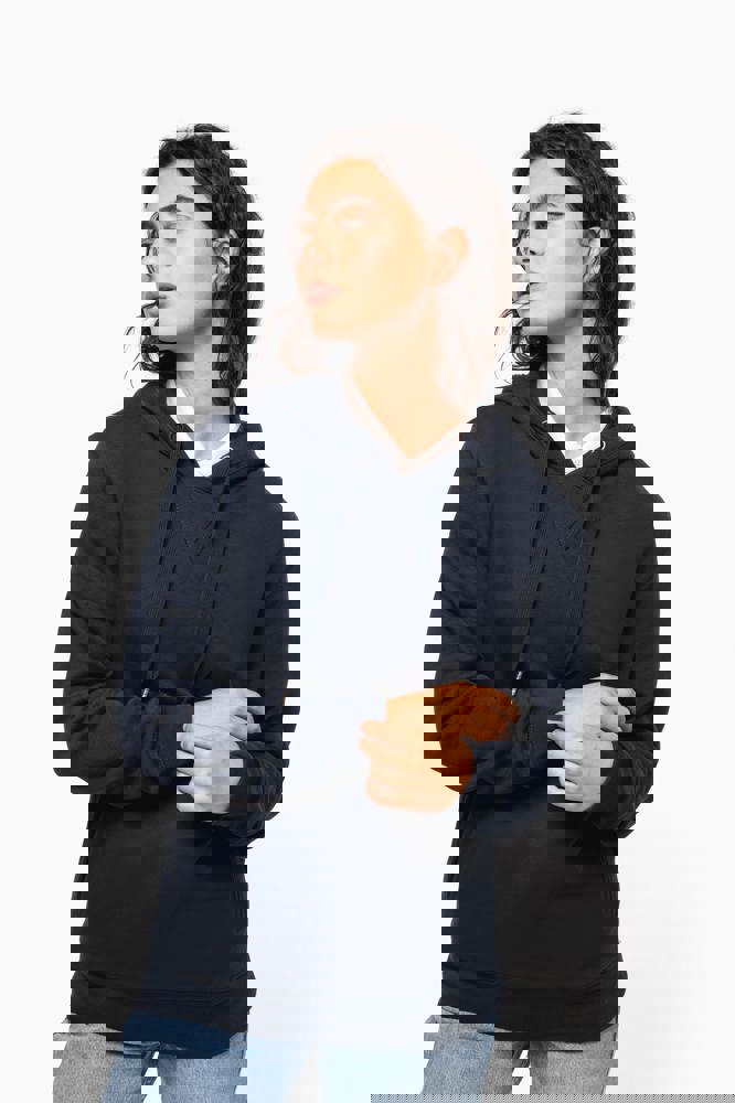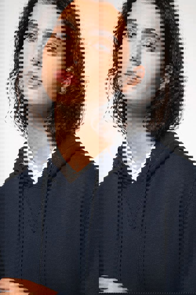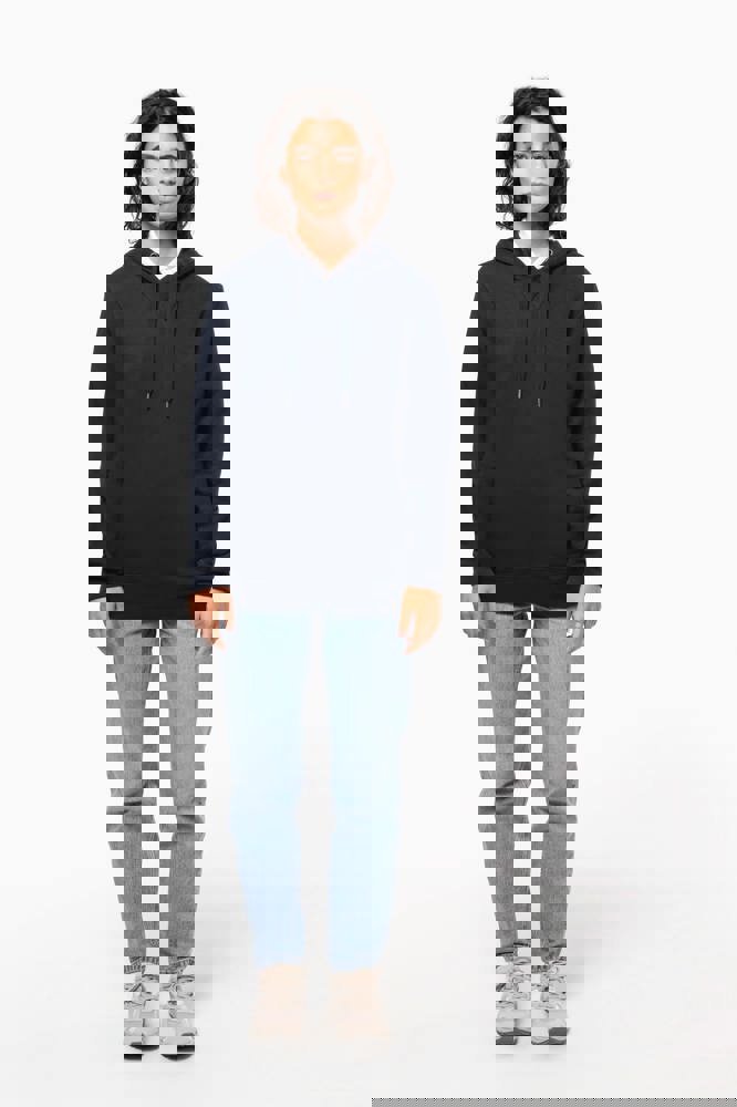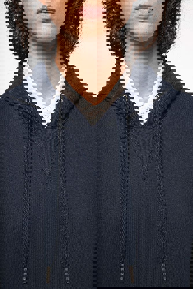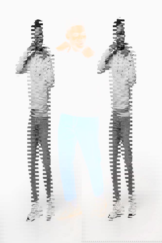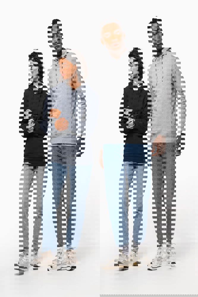 80% biologisch katoen / 20% gerecycleerd polyester post-consumer. Oxford Grey 75% biologisch katoen / 25% gerecycleerd polyester post-consumer. Fleece french terry LST (Low Shrinkage Terry). Stof: enzymgewassen. Rechte snit. 2 omzoomde zakken aan de voorkant. Ribboord aan mouwuiteinden, onderkant en de rand van de gevoerde capuchon, met toon-op-toon aanrijgkoordjes met metalen uiteinde. Halvemaanvormige halsopening op de achterkant, voor eenvoudige personalisatie van het merk aan de binnenkant. Nektape in visgraatmotief aan de binnenzijde van de kraag en V-afwerking aan de halsopening. Geen merklabel in de kraag, maar enkel een maatlabel voor eenvoudige personalisatie.