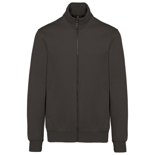 80% katoen / 20% polyester. Buitenoppervlak 100% katoen. LSF-behandeling (Low Shrinkage Fleece: voorgekrompen fleece). Aan de binnenkant geborsteld fleece 3 draden van gekamd katoen. Rechte snit. Rechte mouwen. Opstaande kraag. Ritssluiting in toon op toon plastic. 2 ritszakken en biesjes opzij. Halvemaanvormige afwerking aan de halsopening op de achterkant, voor eenvoudige personalisatie van het merk aan de binnenkant van de kraag. Afwerking van 1x1 ribboord aan de mouwuiteinden en onderaan. Tear-away merklabel.
