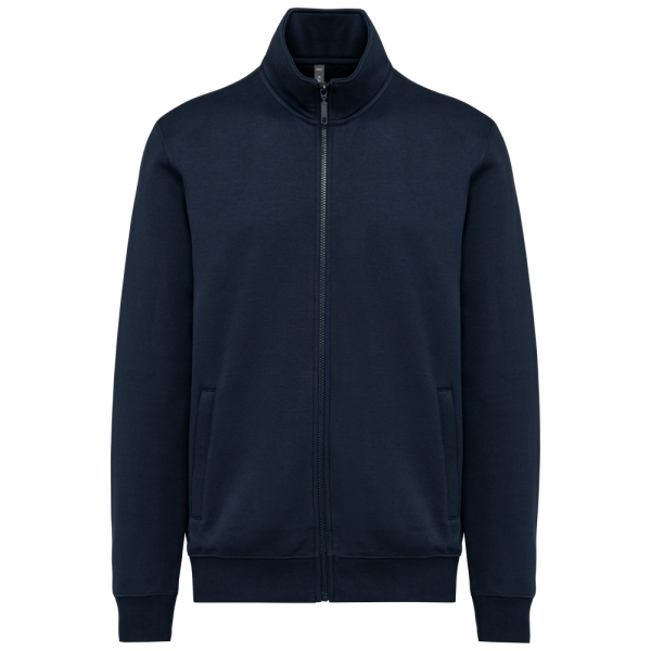 80% katoen / 20% polyester. Buitenoppervlak 100% katoen. LSF-behandeling (Low Shrinkage Fleece: voorgekrompen fleece). Aan de binnenkant geborsteld fleece 3 draden van gekamd katoen. Rechte snit. Rechte mouwen. Opstaande kraag. Ritssluiting in toon op toon plastic. 2 ritszakken en biesjes opzij. Halvemaanvormige afwerking aan de halsopening op de achterkant, voor eenvoudige personalisatie van het merk aan de binnenkant van de kraag. Afwerking van 1x1 ribboord aan de mouwuiteinden en onderaan. Tear-away merklabel.