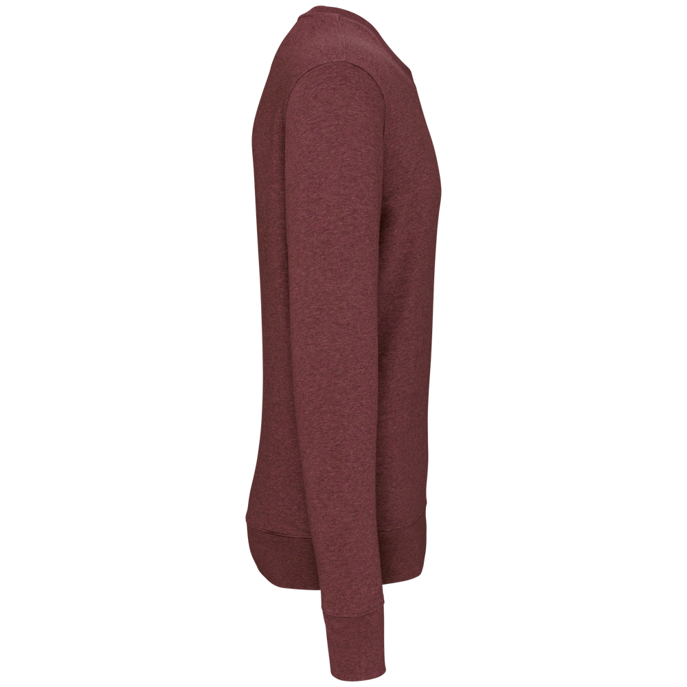 85% katoen / 15% polyester. Gemaakt van 85% biologisch katoen en 15% gerecycled polyester post-consumer. Buitenoppervlak 100% katoen. Geborsteld fleece 3 draden LSF (Low Shrinkage Fleece) aan de binnenkant. Gekamd katoen. Enzymgewassen. Rechte snit. 1x1 ribboord in buisconstructie voor een betere afwerking aan de hals, de mouwuiteinden en de onderkant. Nektape in toon-op-toon jersey en halvemaanvormige afwerking aan de binnenkant van de kraag. Afwerking met dubbel stiksel aan hals, mouwuiteinden en onderkant. Geen merklabel in de kraag, maar enkel een maatlabel voor eenvoudige personalisatie.