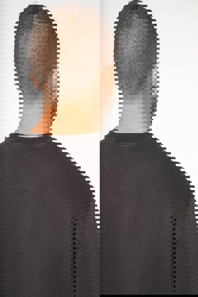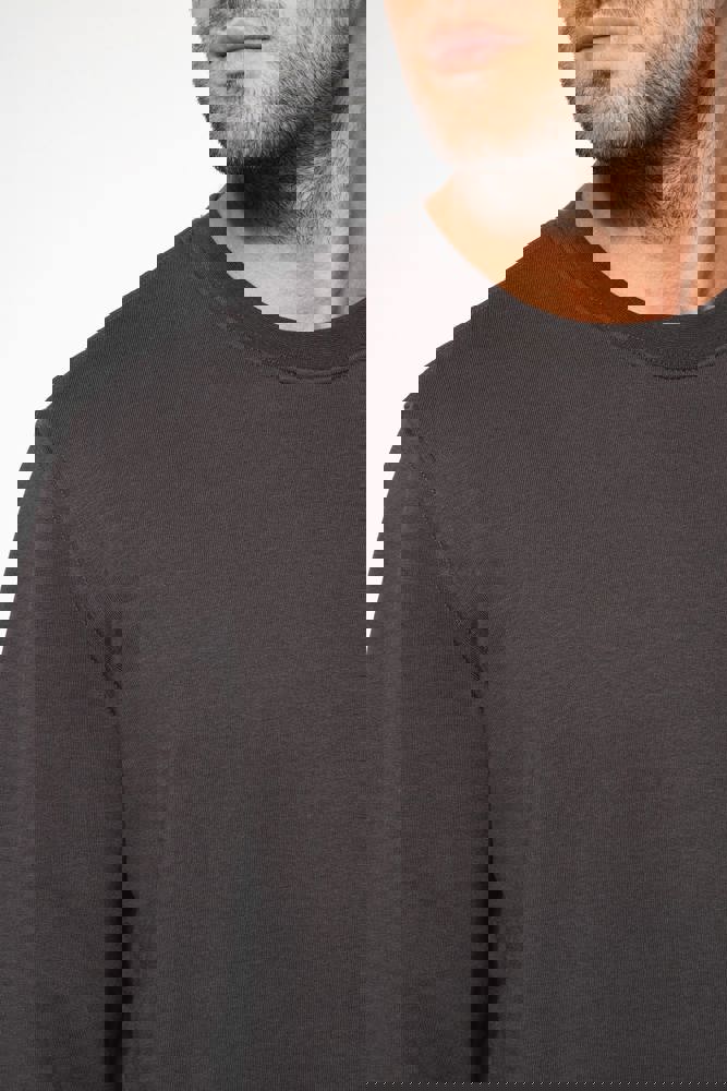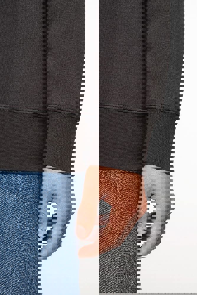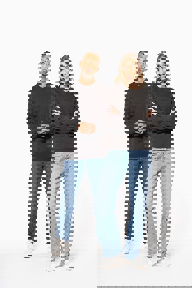 85% katoen / 15% polyester. Gemaakt van 85% biologisch katoen en 15% gerecycled polyester post-consumer. Buitenoppervlak 100% katoen. Geborsteld fleece 3 draden LSF (Low Shrinkage Fleece) aan de binnenkant. Gekamd katoen. Enzymgewassen. Rechte snit. 1x1 ribboord in buisconstructie voor een betere afwerking aan de hals, de mouwuiteinden en de onderkant. Nektape in toon-op-toon jersey en halvemaanvormige afwerking aan de binnenkant van de kraag. Afwerking met dubbel stiksel aan hals, mouwuiteinden en onderkant. Geen merklabel in de kraag, maar enkel een maatlabel voor eenvoudige personalisatie.