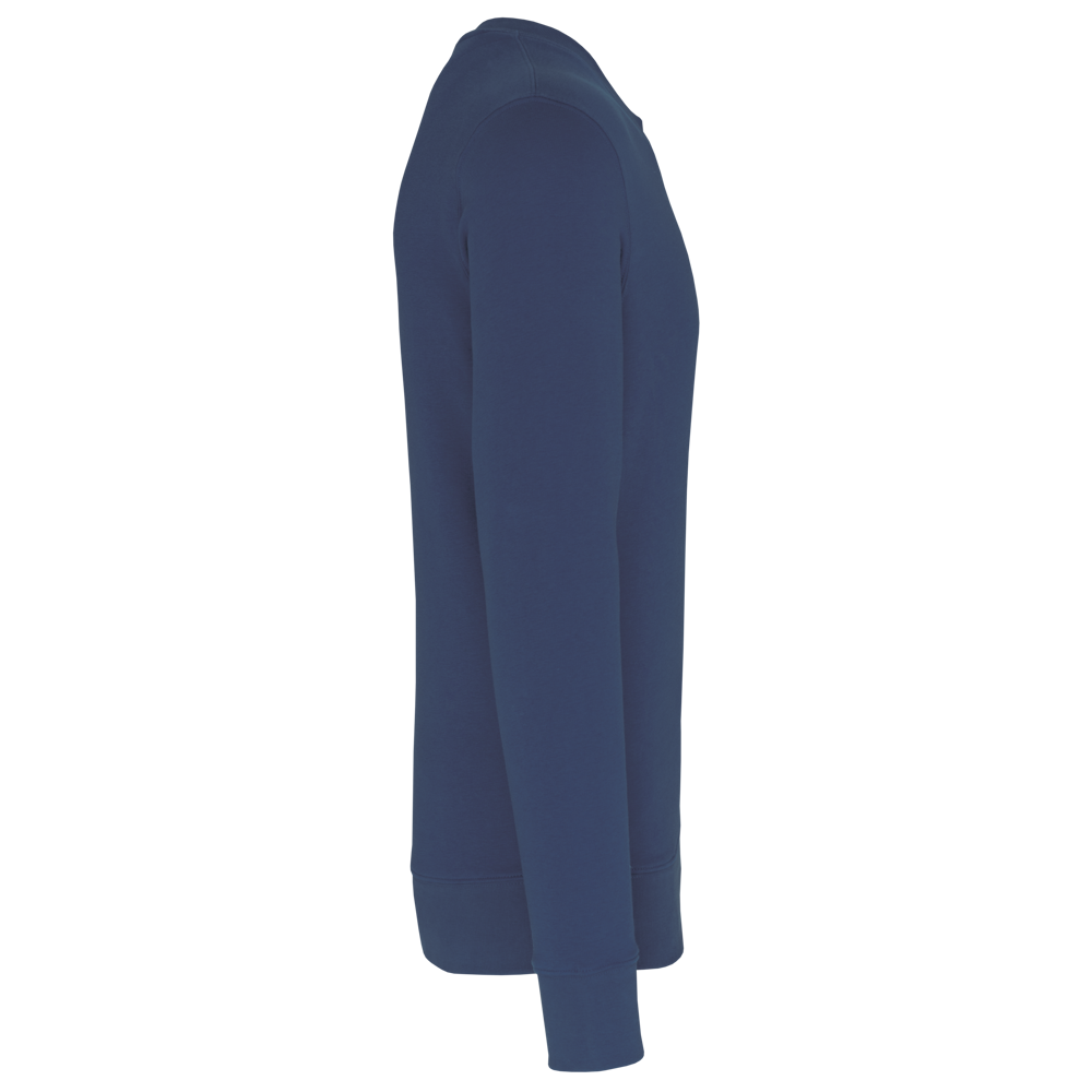 85% katoen / 15% polyester. Gemaakt van 85% biologisch katoen en 15% gerecycled polyester post-consumer. Buitenoppervlak 100% katoen. Geborsteld fleece 3 draden LSF (Low Shrinkage Fleece) aan de binnenkant. Gekamd katoen. Enzymgewassen. Rechte snit. 1x1 ribboord in buisconstructie voor een betere afwerking aan de hals, de mouwuiteinden en de onderkant. Nektape in toon-op-toon jersey en halvemaanvormige afwerking aan de binnenkant van de kraag. Afwerking met dubbel stiksel aan hals, mouwuiteinden en onderkant. Geen merklabel in de kraag, maar enkel een maatlabel voor eenvoudige personalisatie.