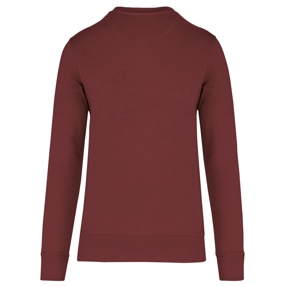 85% katoen / 15% polyester. Gemaakt van 85% biologisch katoen en 15% gerecycled polyester post-consumer. Buitenoppervlak 100% katoen. Geborsteld fleece 3 draden LSF (Low Shrinkage Fleece) aan de binnenkant. Gekamd katoen. Enzymgewassen. Rechte snit. 1x1 ribboord in buisconstructie voor een betere afwerking aan de hals, de mouwuiteinden en de onderkant. Nektape in toon-op-toon jersey en halvemaanvormige afwerking aan de binnenkant van de kraag. Afwerking met dubbel stiksel aan hals, mouwuiteinden en onderkant. Geen merklabel in de kraag, maar enkel een maatlabel voor eenvoudige personalisatie.