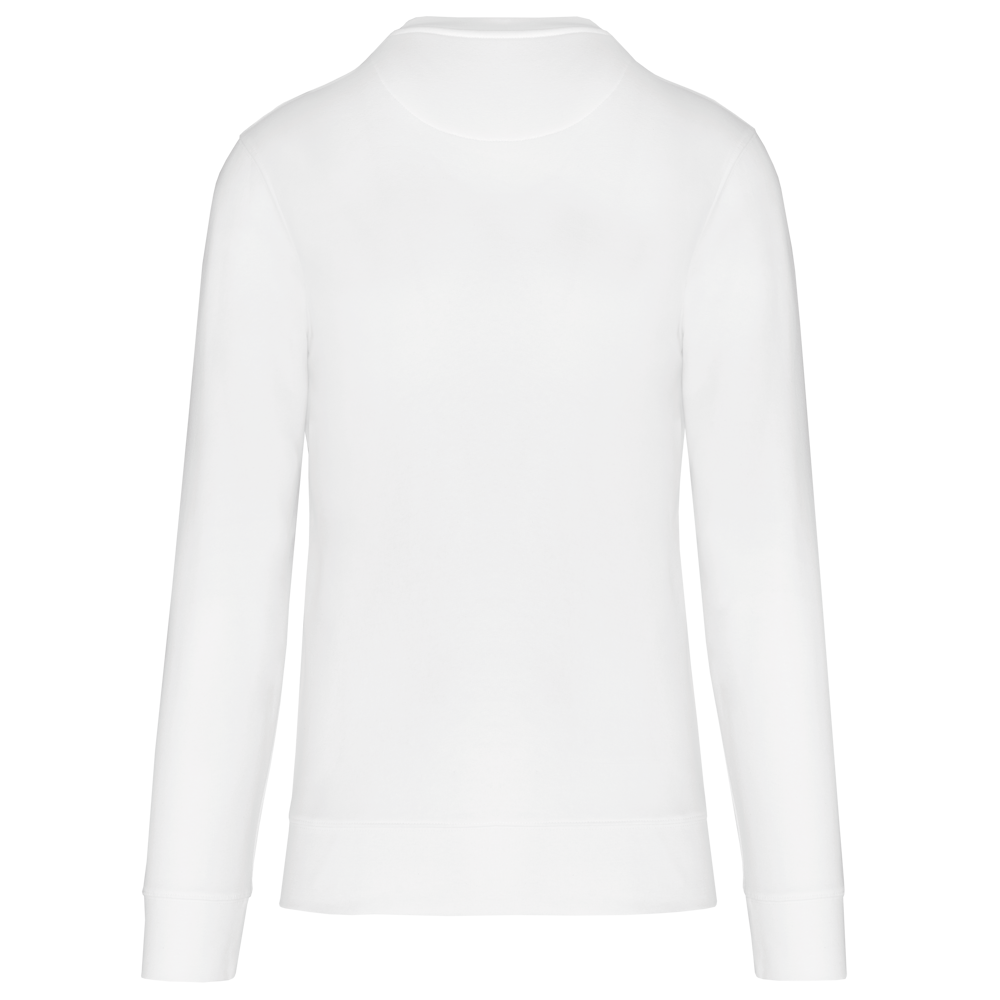 85% katoen / 15% polyester. Gemaakt van 85% biologisch katoen en 15% gerecycled polyester post-consumer. Buitenoppervlak 100% katoen. Geborsteld fleece 3 draden LSF (Low Shrinkage Fleece) aan de binnenkant. Gekamd katoen. Enzymgewassen. Rechte snit. 1x1 ribboord in buisconstructie voor een betere afwerking aan de hals, de mouwuiteinden en de onderkant. Nektape in toon-op-toon jersey en halvemaanvormige afwerking aan de binnenkant van de kraag. Afwerking met dubbel stiksel aan hals, mouwuiteinden en onderkant. Geen merklabel in de kraag, maar enkel een maatlabel voor eenvoudige personalisatie.
