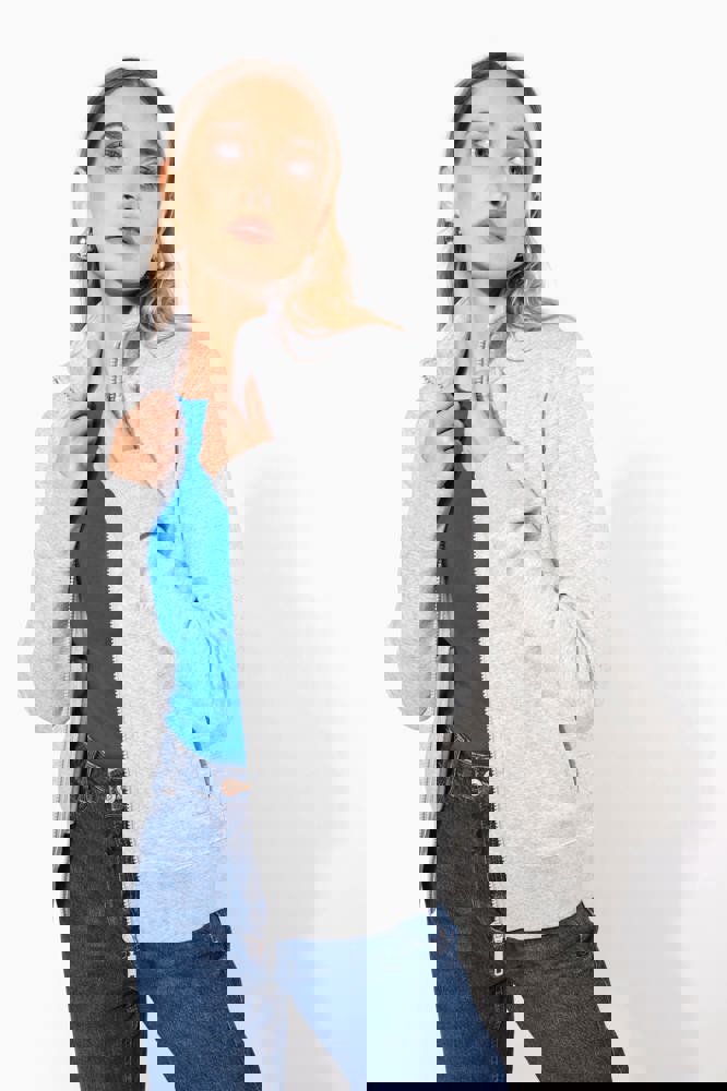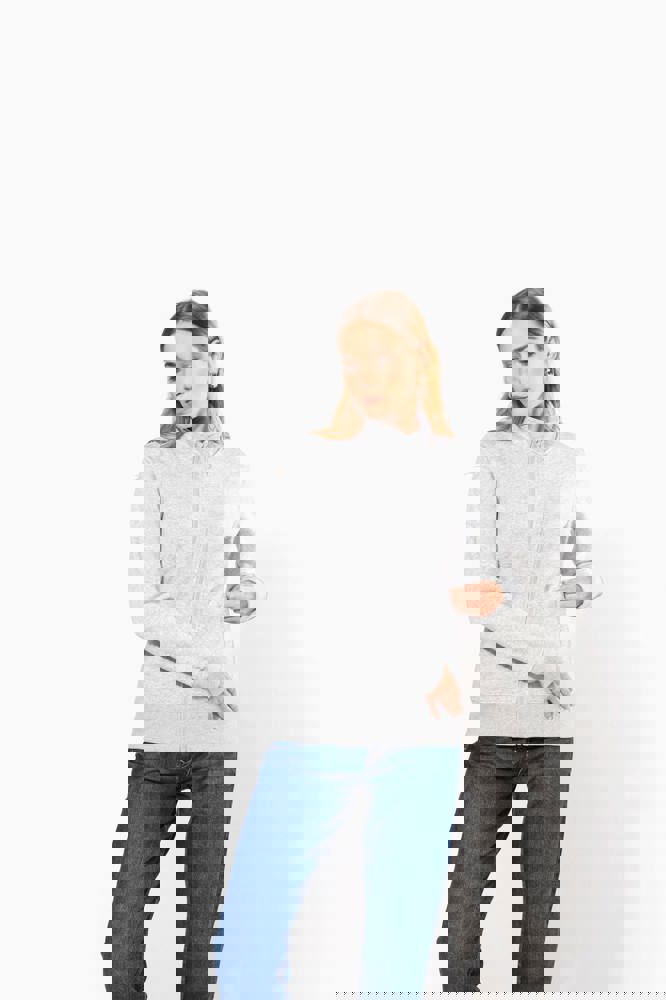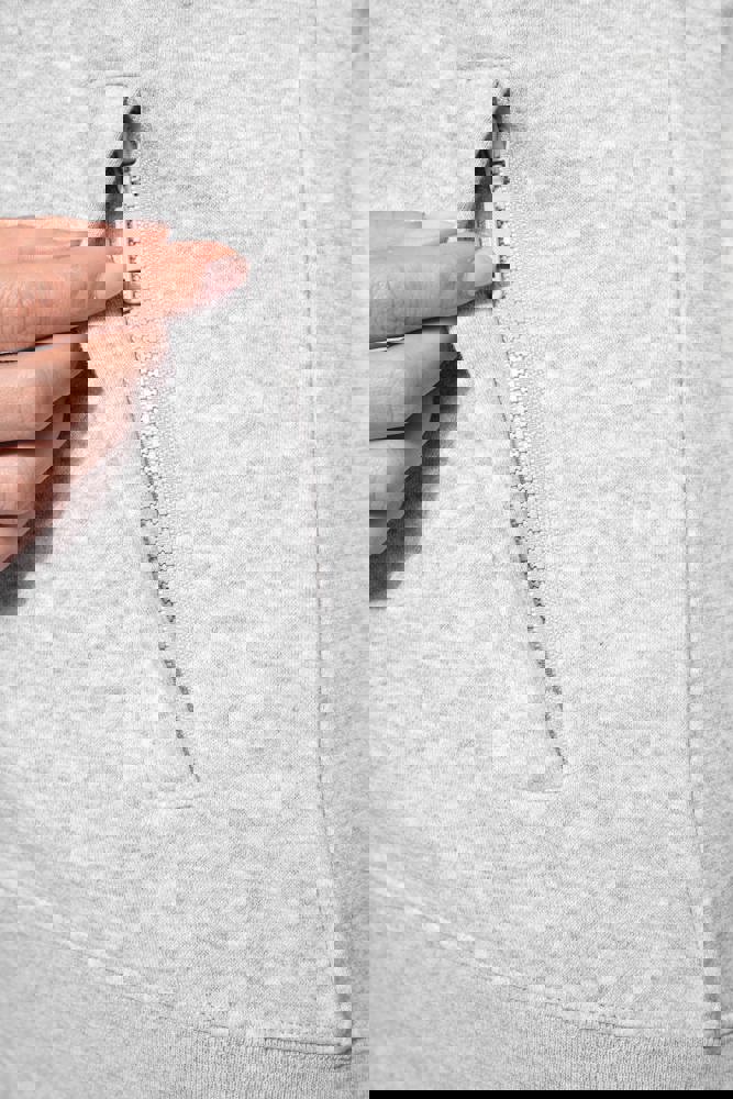 80% katoen / 20% polyester. Buitenoppervlak 100% katoen. LSF-behandeling (Low Shrinkage Fleece: voorgekrompen fleece). Aan de binnenkant geborsteld fleece 3 draden van gekamd katoen. Rechte snit. Rechte mouwen. Opstaande kraag. Ritssluiting in toon op toon plastic. 2 ritszakken en biesjes opzij. Halvemaanvormige afwerking aan de halsopening op de achterkant, voor eenvoudige personalisatie van het merk aan de binnenkant van de kraag. Afwerking van 1x1 ribboord aan de mouwuiteinden en onderaan. Tear-away merklabel.