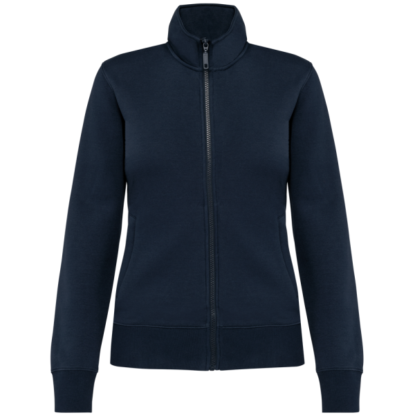 80% katoen / 20% polyester. Buitenoppervlak 100% katoen. LSF-behandeling (Low Shrinkage Fleece: voorgekrompen fleece). Aan de binnenkant geborsteld fleece 3 draden van gekamd katoen. Rechte snit. Rechte mouwen. Opstaande kraag. Ritssluiting in toon op toon plastic. 2 ritszakken en biesjes opzij. Halvemaanvormige afwerking aan de halsopening op de achterkant, voor eenvoudige personalisatie van het merk aan de binnenkant van de kraag. Afwerking van 1x1 ribboord aan de mouwuiteinden en onderaan. Tear-away merklabel.