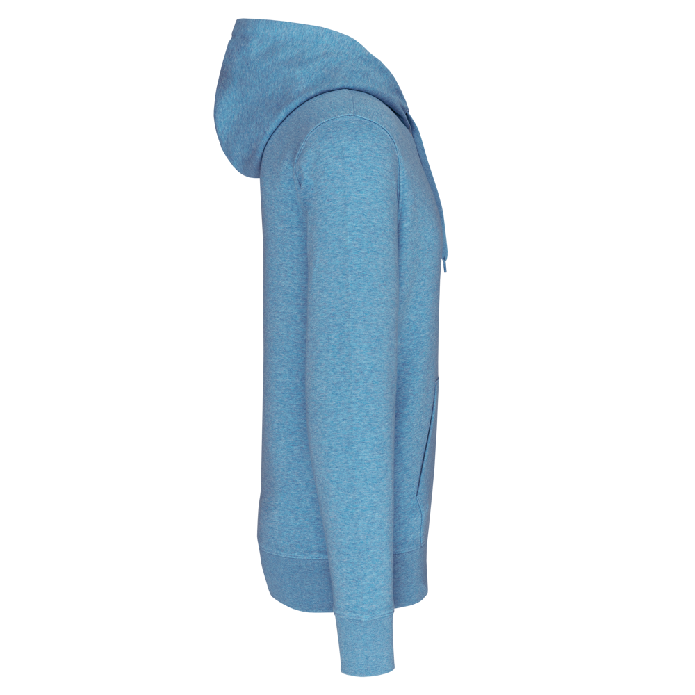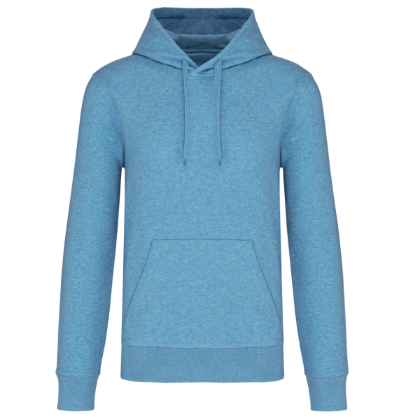 85% katoen / 15% polyester. Gemaakt van 85% biologisch katoen en 15% gerecycled polyester post-consumer. Buitenoppervlak 100% gekamd katoen. Geborstelde fleece 3 draden LSF (Low Shrinkage Fleece) aan de binnenkant. Enzymgewassen. Rechte snit. 1x1 ribboord in buisconstructie voor een betere afwerking aan de mouwuiteinden en de onderkant. Kangoeroezak. Gevoerde capuchon 100% katoen, jerseykatoen 180 g. Nektape in toon op toon jersey en halvemaanvormige afwerking aan de binnenkant van de kraag. Afwerking dubbel stiksel aan de mouwuiteinden, onderkant en hals. Geen merklabel in de kraag, maar enkel een maatlabel voor eenvoudige personalisatie.