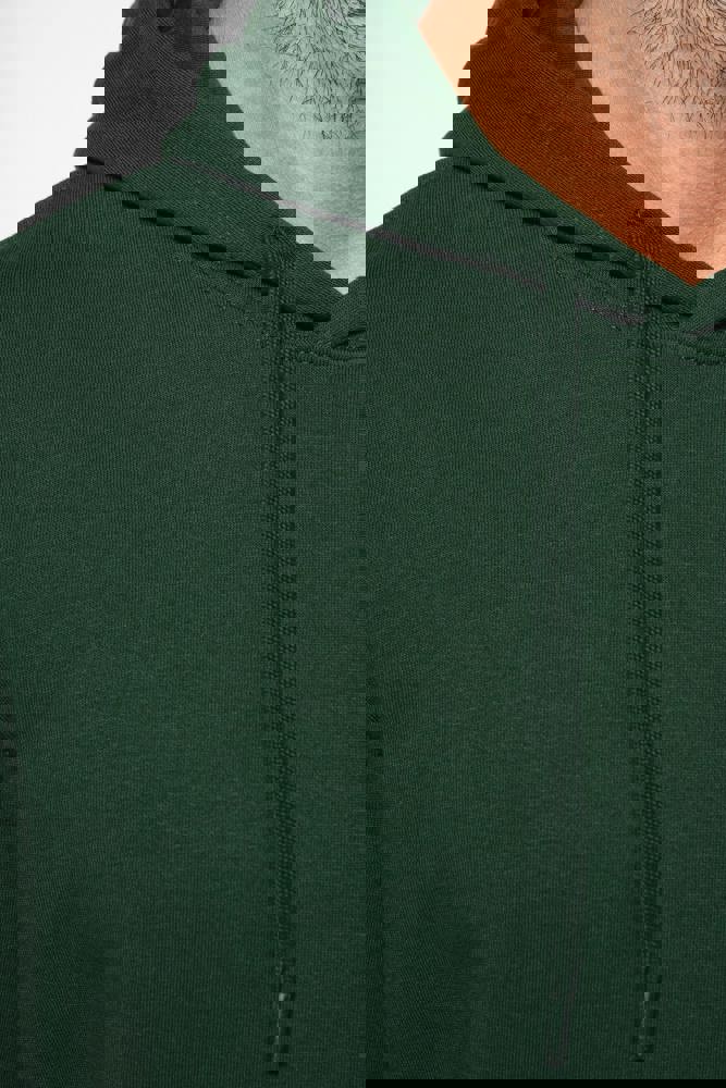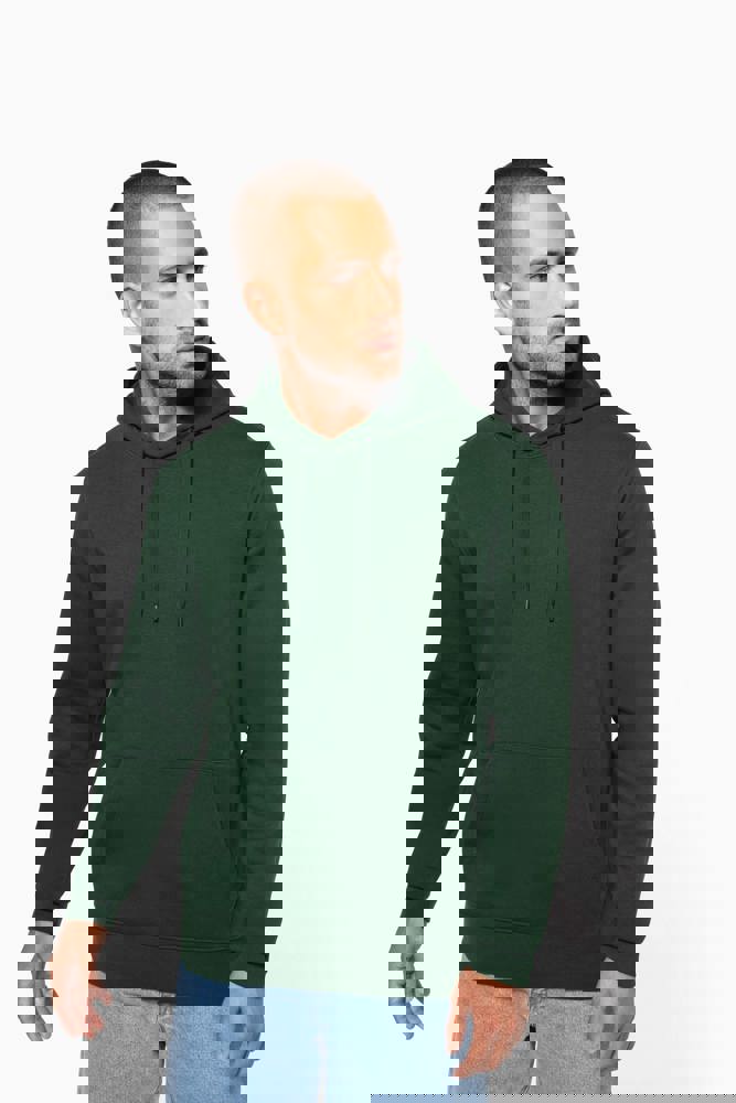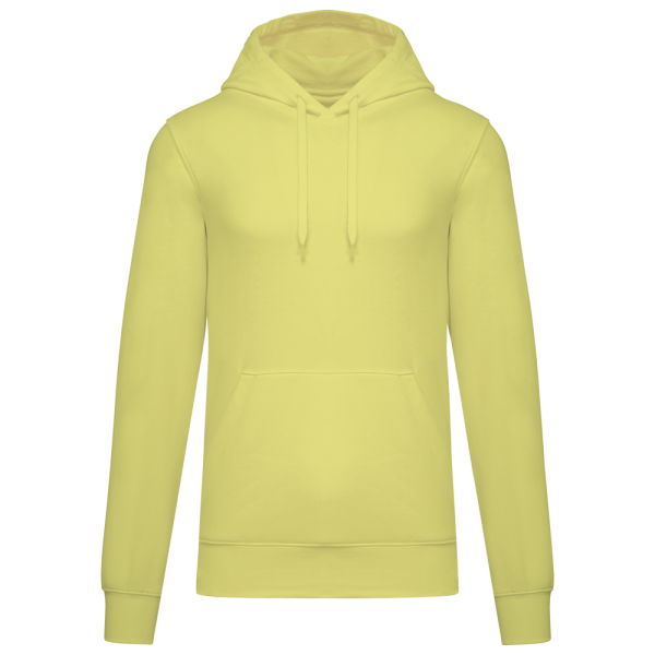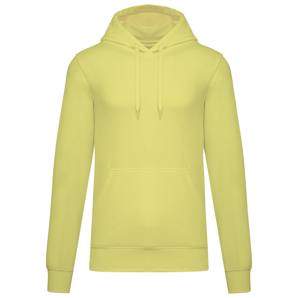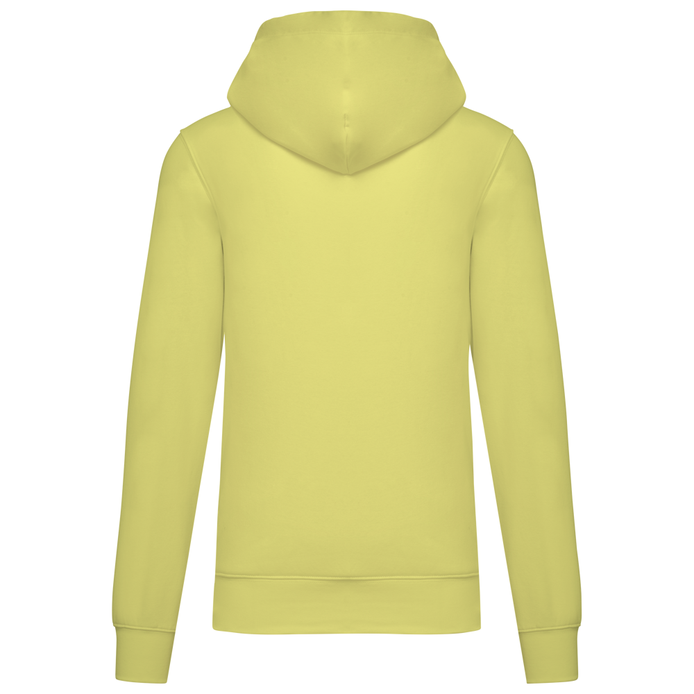 85% katoen / 15% polyester. Gemaakt van 85% biologisch katoen en 15% gerecycled polyester post-consumer. Buitenoppervlak 100% gekamd katoen. Geborstelde fleece 3 draden LSF (Low Shrinkage Fleece) aan de binnenkant. Enzymgewassen. Rechte snit. 1x1 ribboord in buisconstructie voor een betere afwerking aan de mouwuiteinden en de onderkant. Kangoeroezak. Gevoerde capuchon 100% katoen, jerseykatoen 180 g. Nektape in toon op toon jersey en halvemaanvormige afwerking aan de binnenkant van de kraag. Afwerking dubbel stiksel aan de mouwuiteinden, onderkant en hals. Geen merklabel in de kraag, maar enkel een maatlabel voor eenvoudige personalisatie.