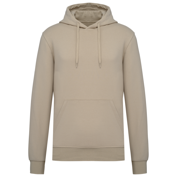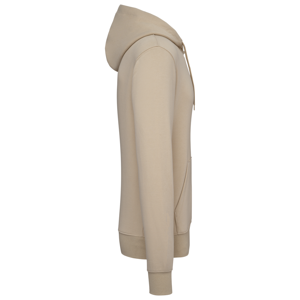 85% katoen / 15% polyester. Gemaakt van 85% biologisch katoen en 15% gerecycled polyester post-consumer. Buitenoppervlak 100% gekamd katoen. Geborstelde fleece 3 draden LSF (Low Shrinkage Fleece) aan de binnenkant. Enzymgewassen. Rechte snit. 1x1 ribboord in buisconstructie voor een betere afwerking aan de mouwuiteinden en de onderkant. Kangoeroezak. Gevoerde capuchon 100% katoen, jerseykatoen 180 g. Nektape in toon op toon jersey en halvemaanvormige afwerking aan de binnenkant van de kraag. Afwerking dubbel stiksel aan de mouwuiteinden, onderkant en hals. Geen merklabel in de kraag, maar enkel een maatlabel voor eenvoudige personalisatie.