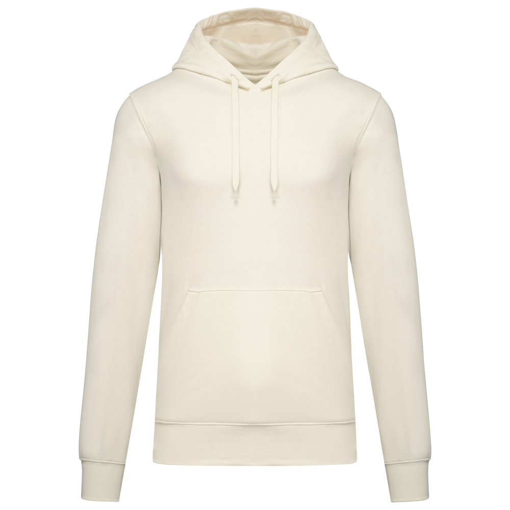 85% katoen / 15% polyester. Gemaakt van 85% biologisch katoen en 15% gerecycled polyester post-consumer. Buitenoppervlak 100% gekamd katoen. Geborstelde fleece 3 draden LSF (Low Shrinkage Fleece) aan de binnenkant. Enzymgewassen. Rechte snit. 1x1 ribboord in buisconstructie voor een betere afwerking aan de mouwuiteinden en de onderkant. Kangoeroezak. Gevoerde capuchon 100% katoen, jerseykatoen 180 g. Nektape in toon op toon jersey en halvemaanvormige afwerking aan de binnenkant van de kraag. Afwerking dubbel stiksel aan de mouwuiteinden, onderkant en hals. Geen merklabel in de kraag, maar enkel een maatlabel voor eenvoudige personalisatie.