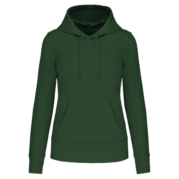 85% katoen / 15% polyester. Gemaakt van 85% biologisch katoen en 15% gerecycled polyester post-consumer. Buitenoppervlak 100% katoen. Geborsteld fleece 3 draden LSF (Low Shrinkage Fleece) aan de binnenkant. Enzymgewassen. Gekamd katoen. Rechte snit. 1x1 ribboord in buisconstructie voor een betere afwerking aan de mouwuiteinden en de onderkant. Kangoeroezak. Gevoerde capuchon 100% katoen, jerseykatoen 180 g. Nektape in toon-op-toon jersey en halvemaanvormige afwerking aan de binnenkant van de kraag. Afwerking met dubbel stiksel aan de mouwuiteinden, de onderkant en de hals. Geen merklabel in de kraag, maar enkel een maatlabel voor eenvoudige personalisatie.