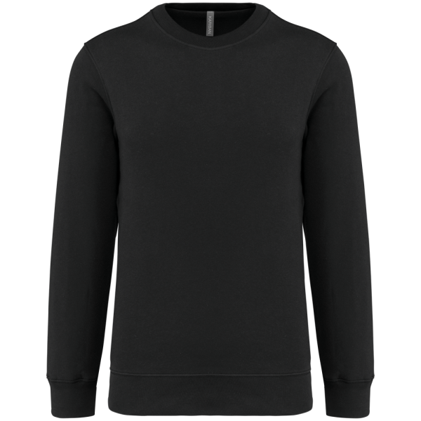80% katoen / 20% polyester. Geborsteld 3 draden LSF-fleece (Low Shrinkage Fleece), behandeld tegen pluizen. Gemaakt in Portugal. Straight snit. Ronde hals. Cut-and-sew-techniek.1x1 buisvormige zoom voor betere afwerking van kraag, manchetten en kledingstuk. Halvemaanvormige afwerking aan de binnenkant van de kraag. Dubbel stiksel aan de mouwuiteinden en de onderkant. Geen merklabel, maar een maatlabel in de kraag voor eenvoudige personalisatie.