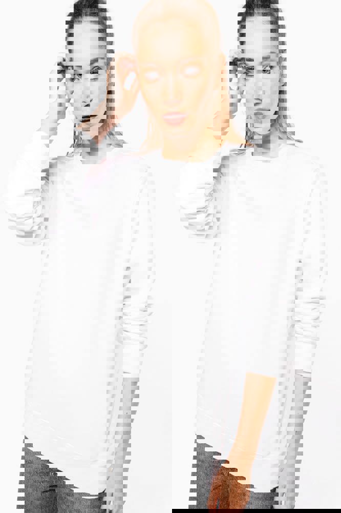 80% katoen / 20% polyester. Geborsteld 3 draden LSF-fleece (Low Shrinkage Fleece), behandeld tegen pluizen. Gemaakt in Portugal. Straight snit. Ronde hals. Cut-and-sew-techniek.1x1 buisvormige zoom voor betere afwerking van kraag, manchetten en kledingstuk. Halvemaanvormige afwerking aan de binnenkant van de kraag. Dubbel stiksel aan de mouwuiteinden en de onderkant. Geen merklabel, maar een maatlabel in de kraag voor eenvoudige personalisatie.