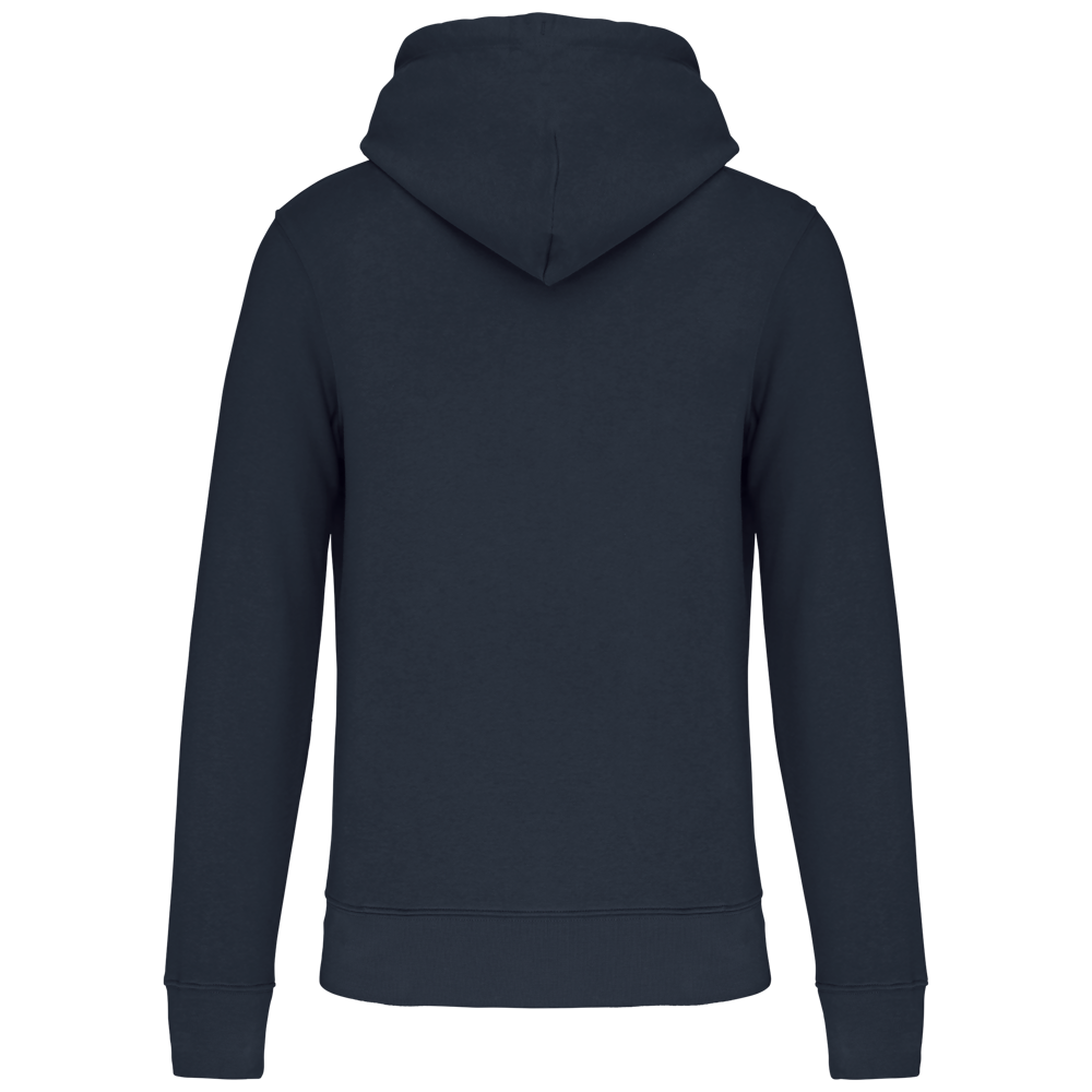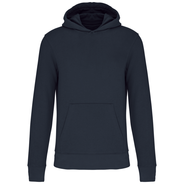 85% katoen / 15% polyester. Gemaakt van 85% biologisch katoen en 15% gerecycled polyester post-consumer. Buitenoppervlak 100% katoen. Geborsteld fleece 3 draden LSF (Low Shrinkage Fleece) aan de binnenkant. Gekamd katoen. Enzymgewassen. Rechte snit. 1x1 ribboord in buisconstructie voor een betere afwerking aan de mouwuiteinden en de onderkant. Kangoeroezak. Gevoerde capuchon 100% katoen, jerseykatoen 180 g. Nektape in toon-op-toon jersey en halvemaanvormige afwerking aan de binnenkant van de kraag. Afwerking met dubbel stiksel aan mouwuiteinden en onderkant. Geen merklabel in de kraag, maar enkel een maatlabel voor eenvoudige personalisatie.