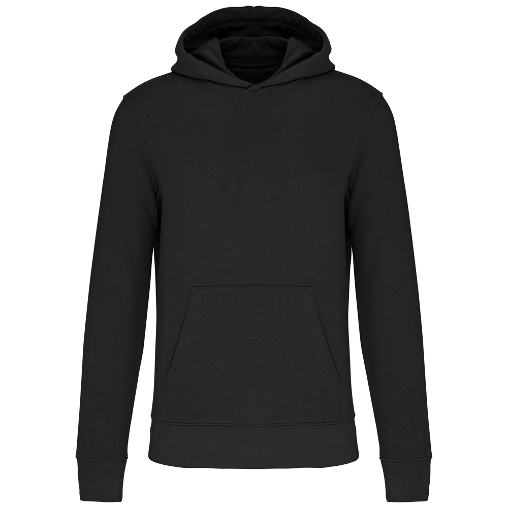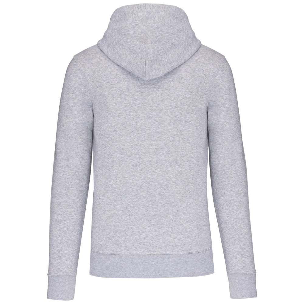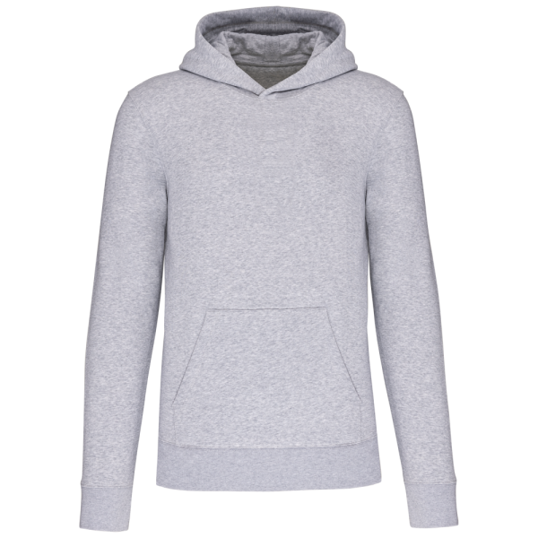 85% katoen / 15% polyester. Gemaakt van 85% biologisch katoen en 15% gerecycled polyester post-consumer. Buitenoppervlak 100% katoen. Geborsteld fleece 3 draden LSF (Low Shrinkage Fleece) aan de binnenkant. Gekamd katoen. Enzymgewassen. Rechte snit. 1x1 ribboord in buisconstructie voor een betere afwerking aan de mouwuiteinden en de onderkant. Kangoeroezak. Gevoerde capuchon 100% katoen, jerseykatoen 180 g. Nektape in toon-op-toon jersey en halvemaanvormige afwerking aan de binnenkant van de kraag. Afwerking met dubbel stiksel aan mouwuiteinden en onderkant. Geen merklabel in de kraag, maar enkel een maatlabel voor eenvoudige personalisatie.